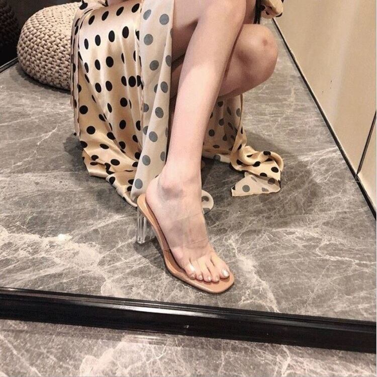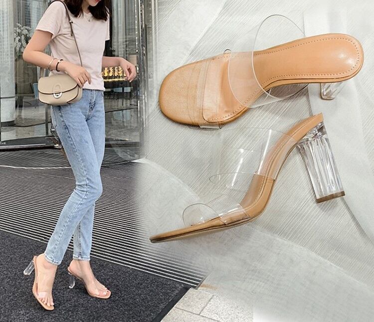 クリアサンダル オープントゥ ハイヒール スリッポン きれいめ カジュアル フェミニン セクシー お出かけ デイリー リゾート デート 女子会 夏 7cm 9cm