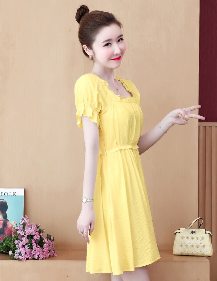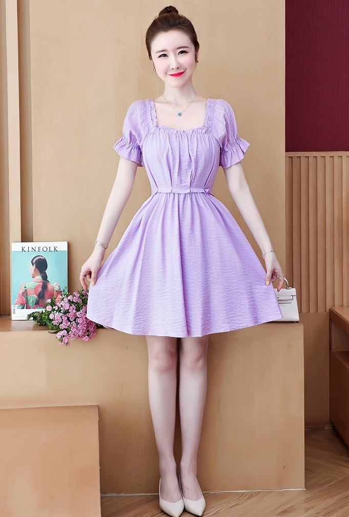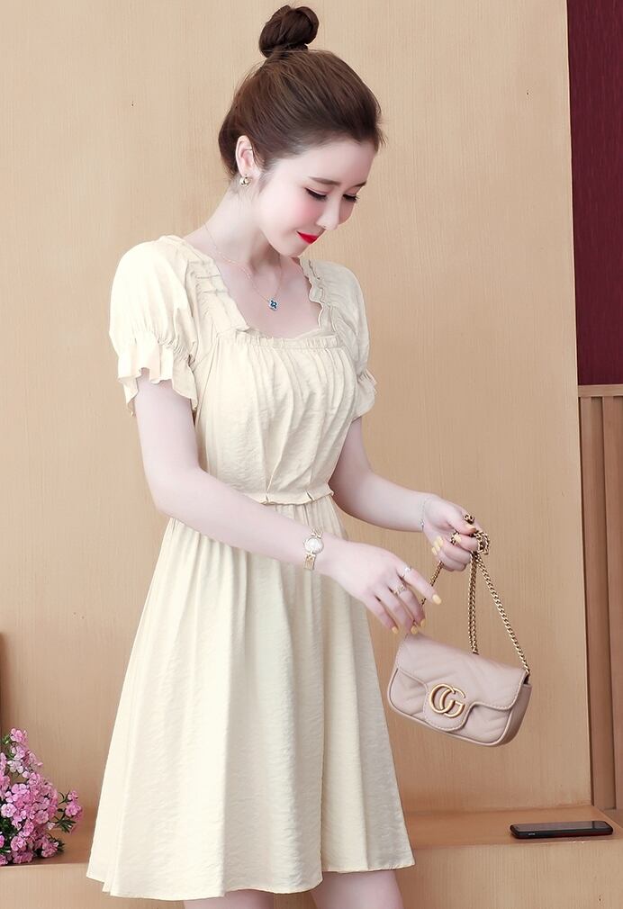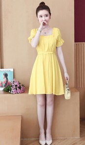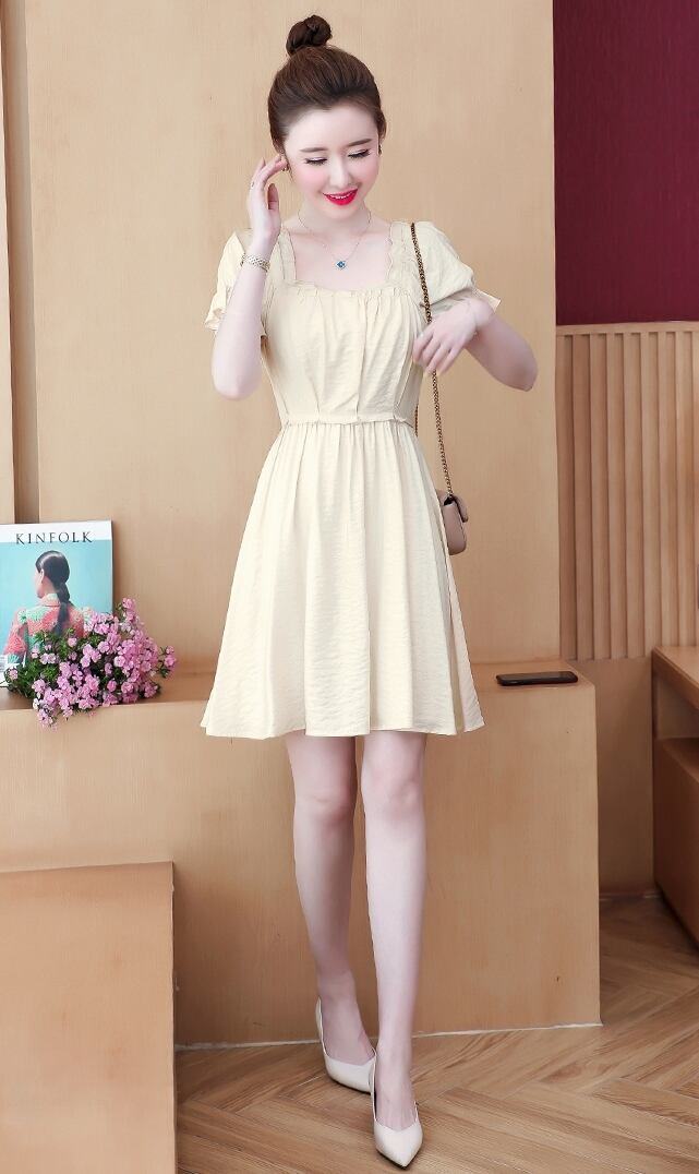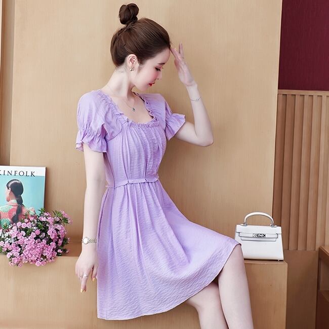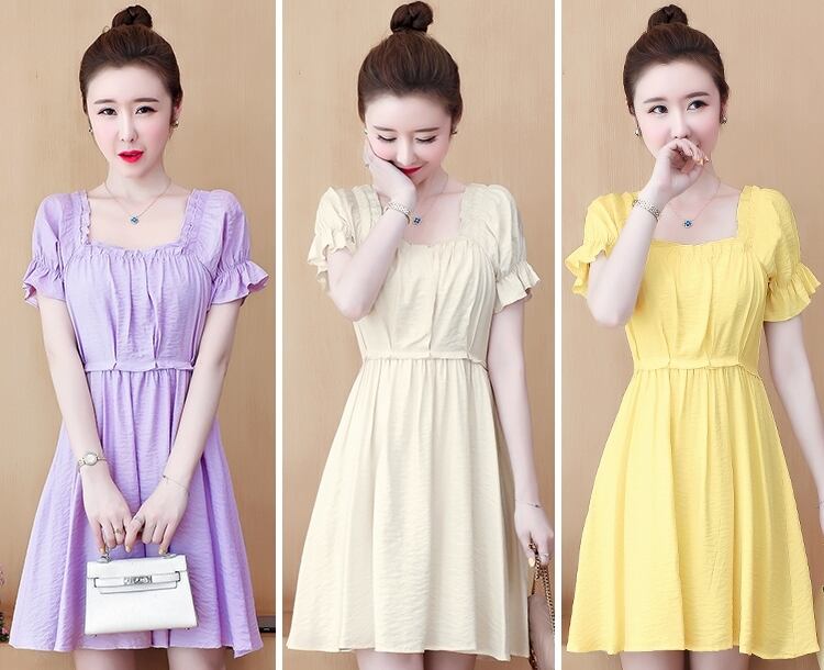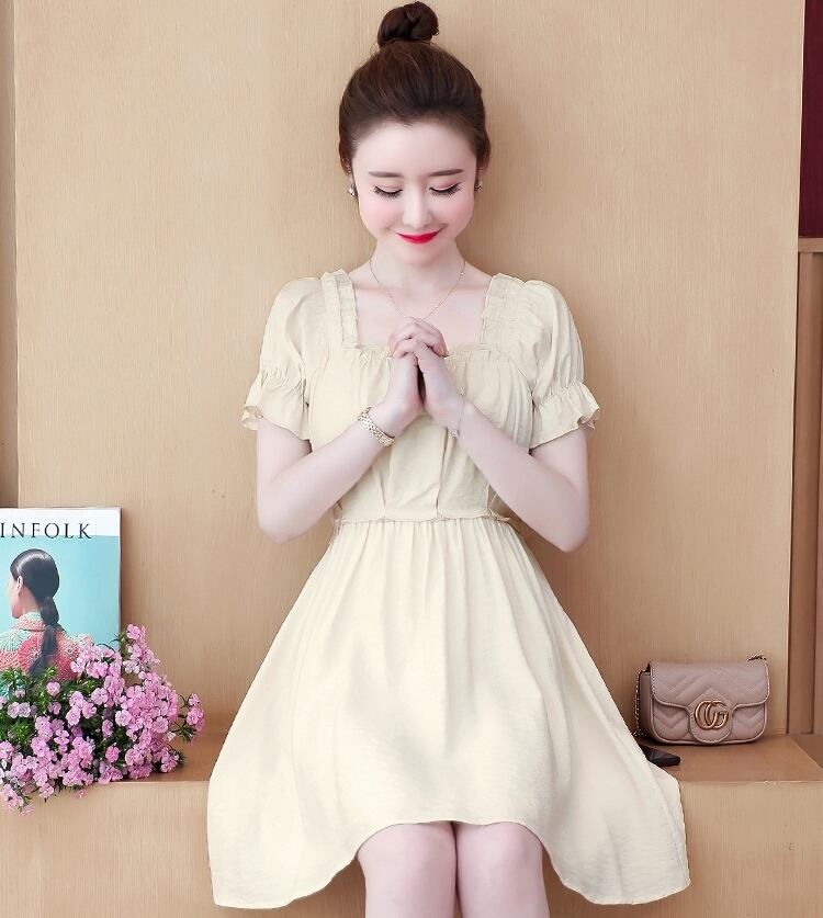 全3色 ワンピース リネン 麻 コットン 綿 ティアード ショート丈 スクエアネック フリル ウエストシャーリング 半袖 パフスリーブ フレア デコルト付近のフリル 上品 カジュアル 大人可愛い お出かけ きれいめ デート リゾート 夏