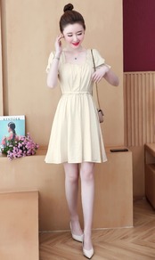 ウエストシャーリングデザインが女性らしいシルエットを活かしてくれるショート丈ワンピース。