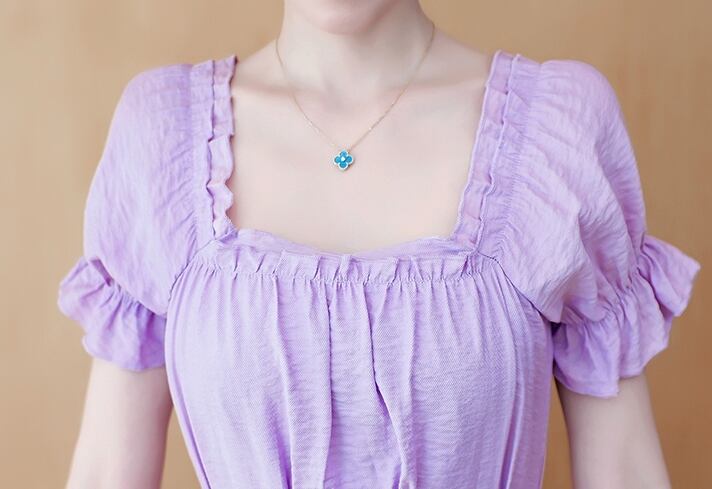 デコルト付近のフリルも可愛く、女性らしさを演出しています♪