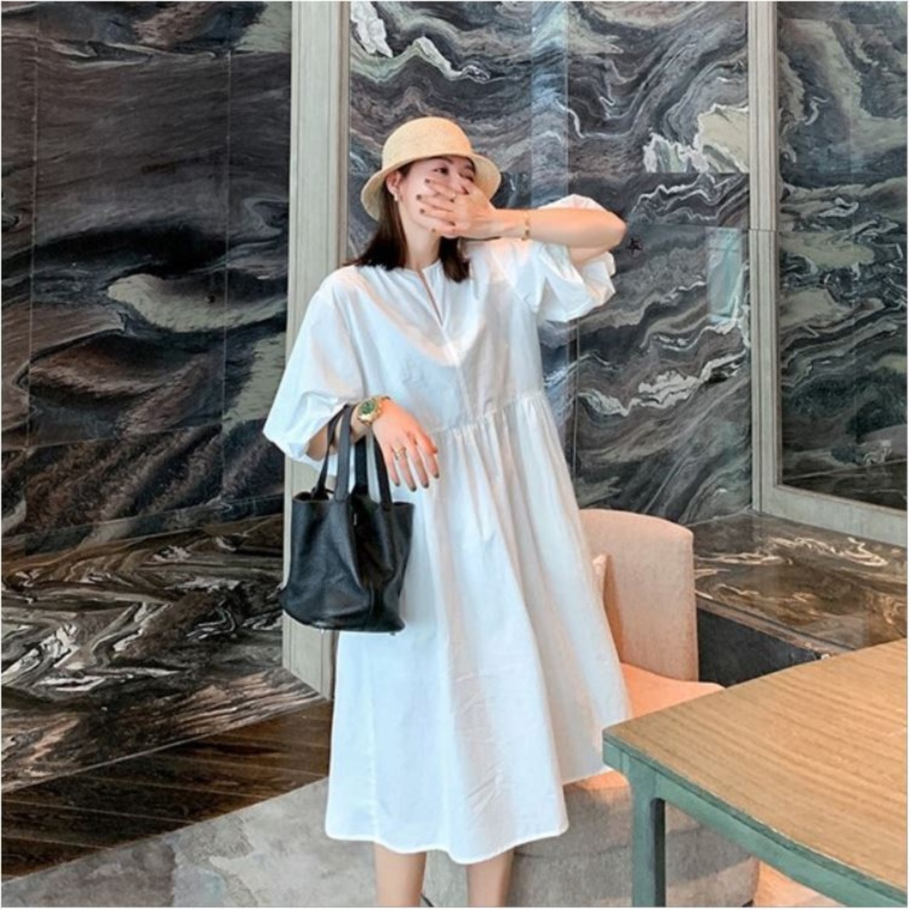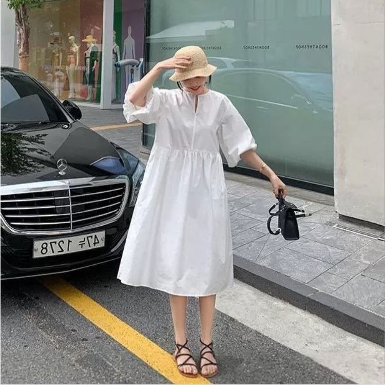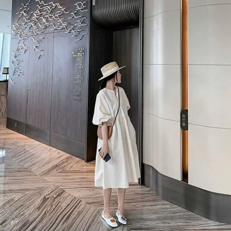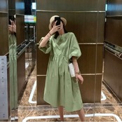 ボリューム感のあるパフスリーブも可愛らしく体型カバーも叶えてくれます♪