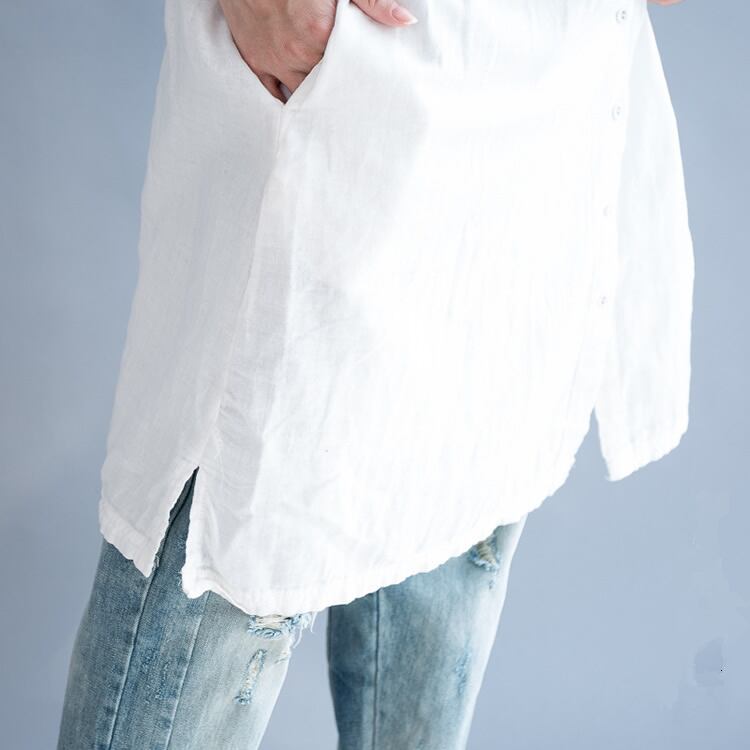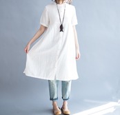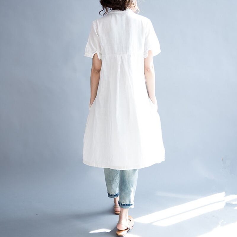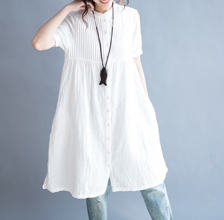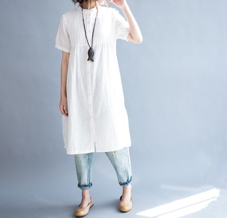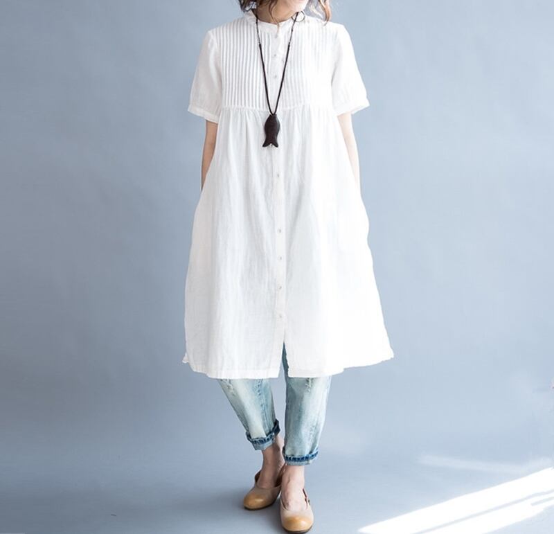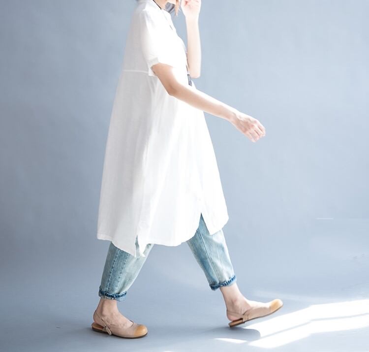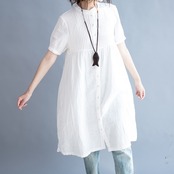 ワンピース シャツワンピース ロングシャツ リネン コットン 綿 麻 フロントボタン クルーネック 半袖 ミモレ丈 Aライン ゆったり 体型カバー 大人 カジュアル お出かけ スタンドカラー リゾート デイリー リラックス オーバーサイズ 夏