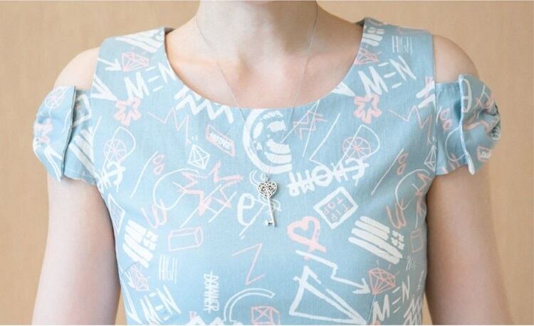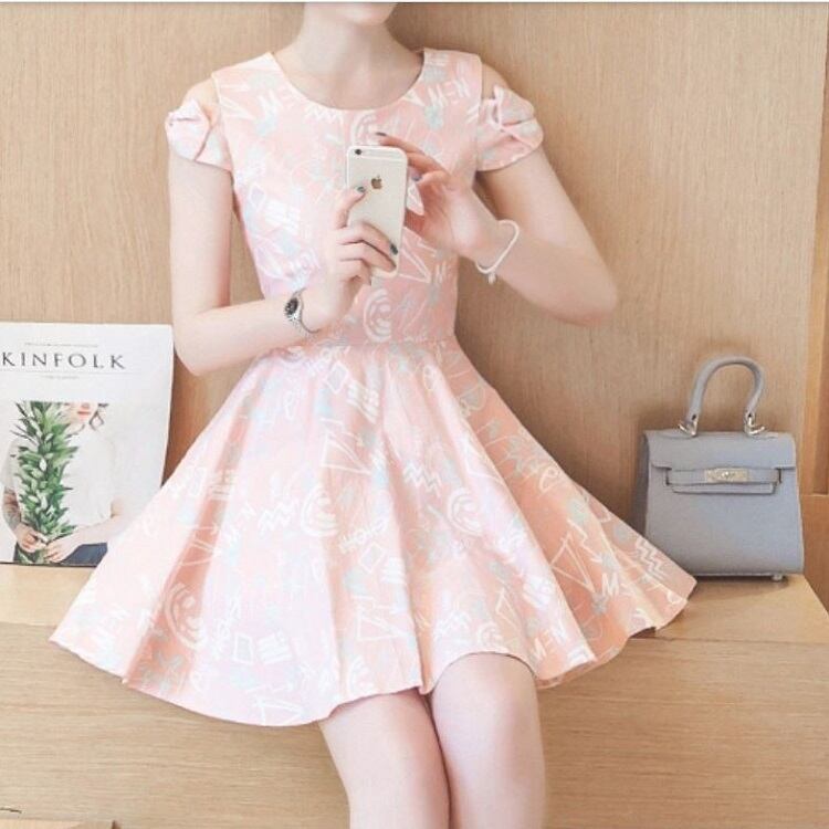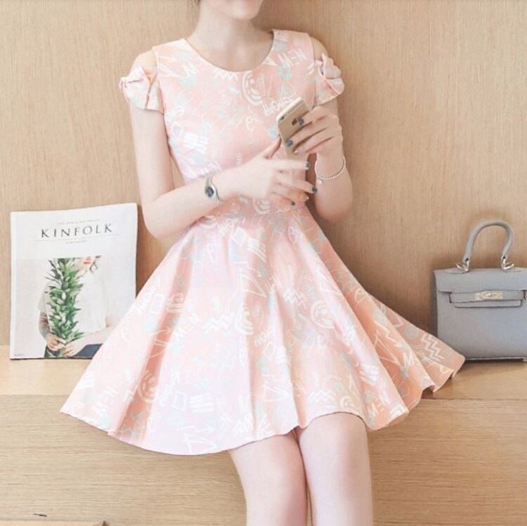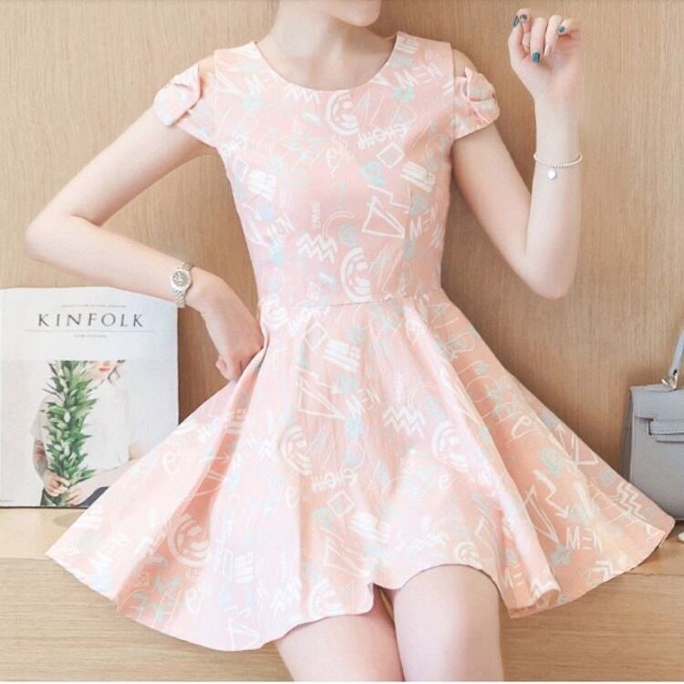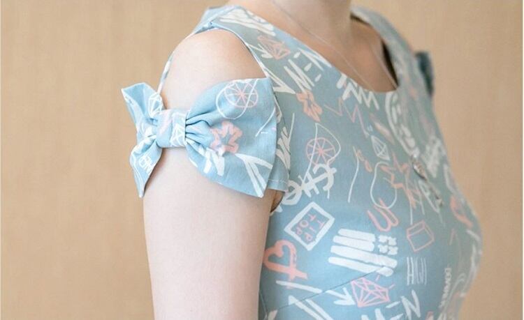 オープンショルダーのリボン袖が可愛らしいミニワンピース。