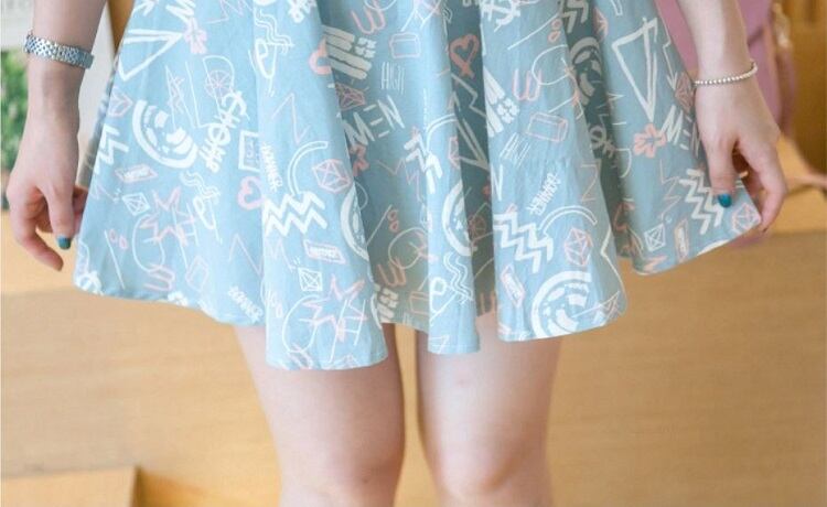 ハイウエストの切替えから広がるフレアラインが美脚効果も抜群♪