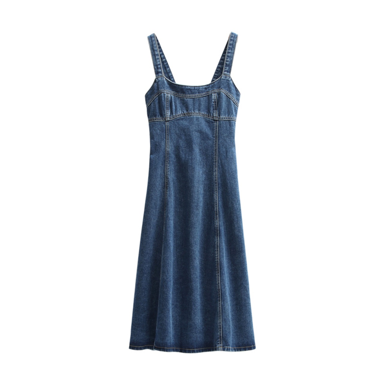 デニムワンピース ジャンパースカート ミモレ丈 サロペットスカート ジーンズ シンプル Aライン フレア クール カジュアル デイリー ゆったり お出かけ 夏
