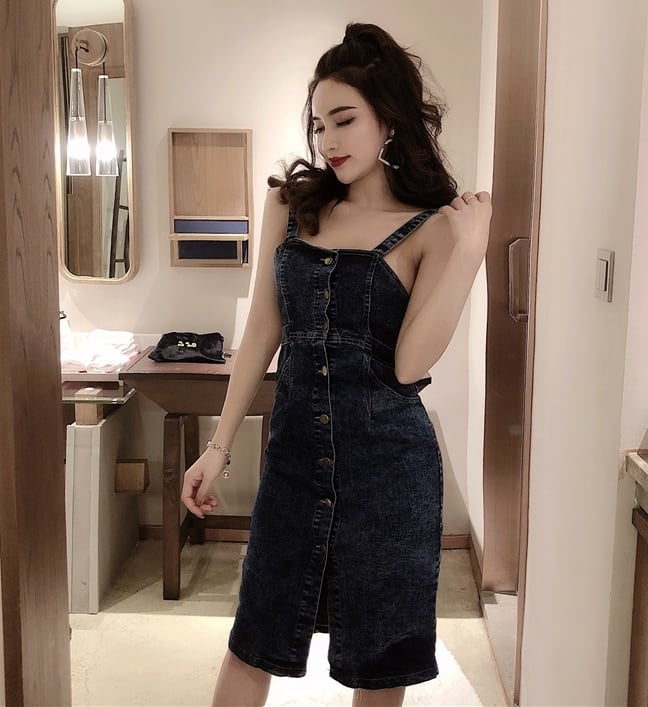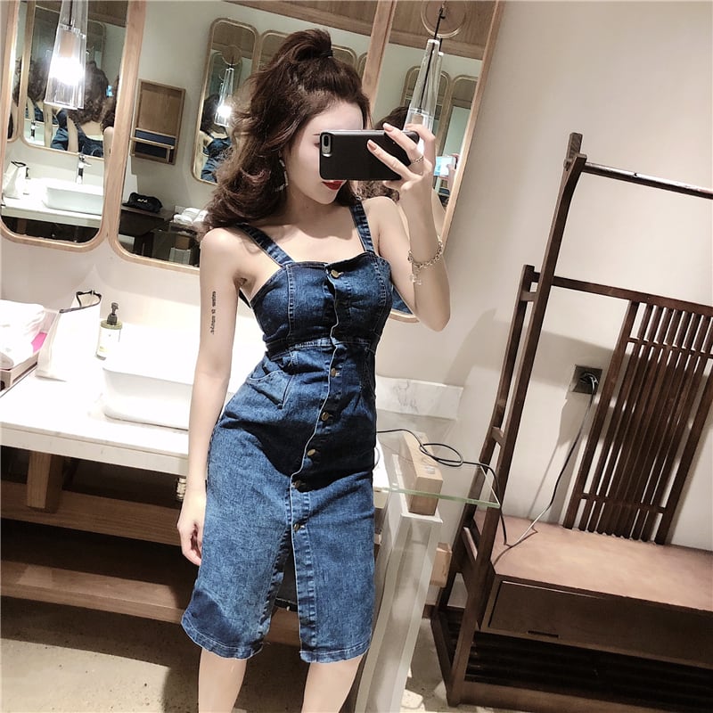 ワンピース サロペットスカート ジャンパースカート デニム バックコンシャス バックシャン 背中見せ 背中開き バックリボン スリム タイト 大人 フロントボタン ひざ丈 カジュアル きれいめ 大人可愛い デート 夏