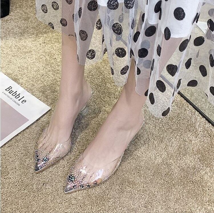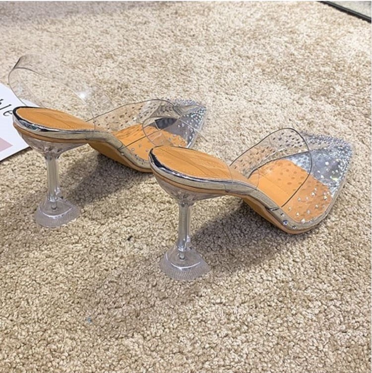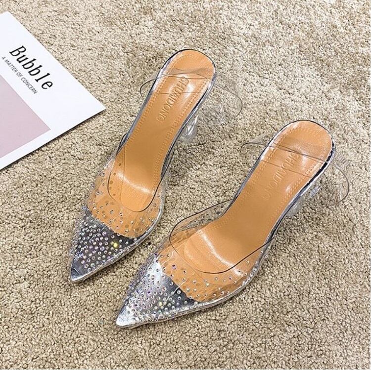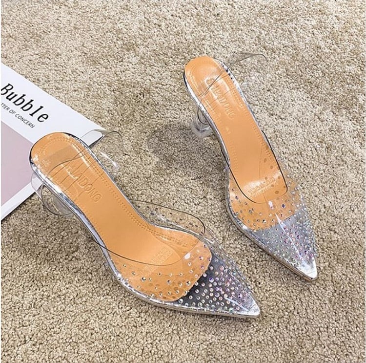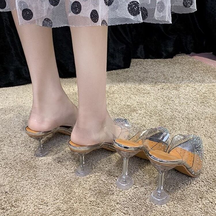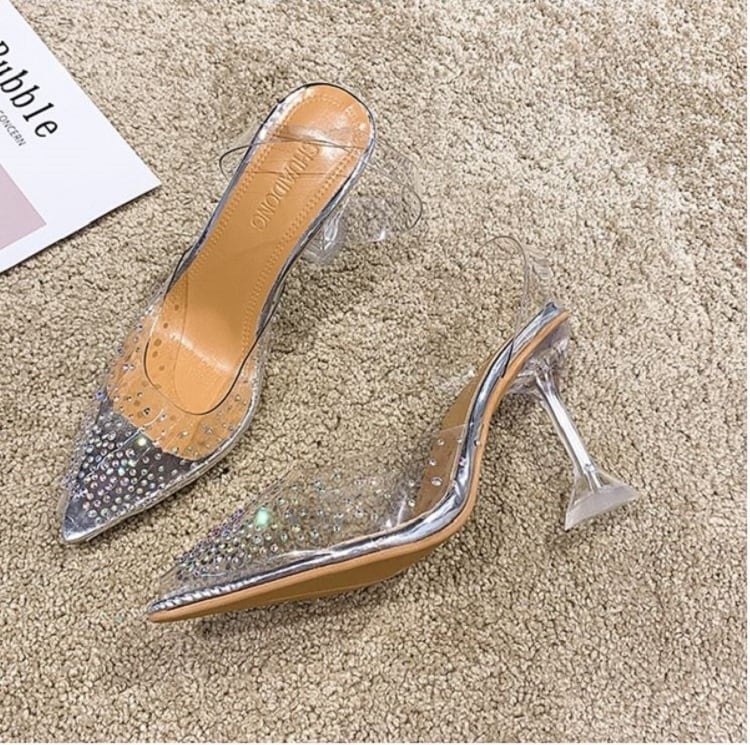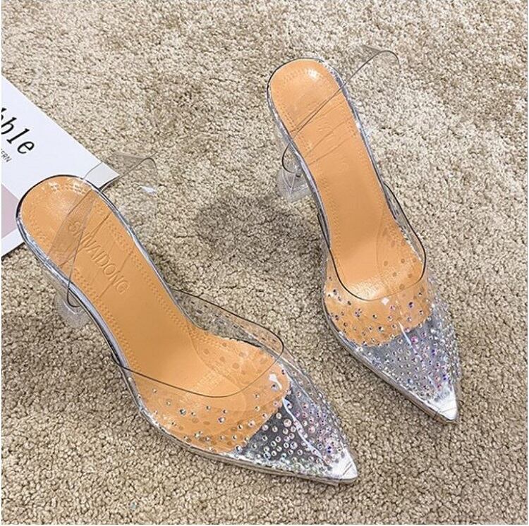 クリアサンダル ハイヒール ポインテッドトゥ ヌーディー ラインストーン シルバー 7cm 9cm 透明 きれいめ カジュアル お出かけ デート リゾート デイリー 夏