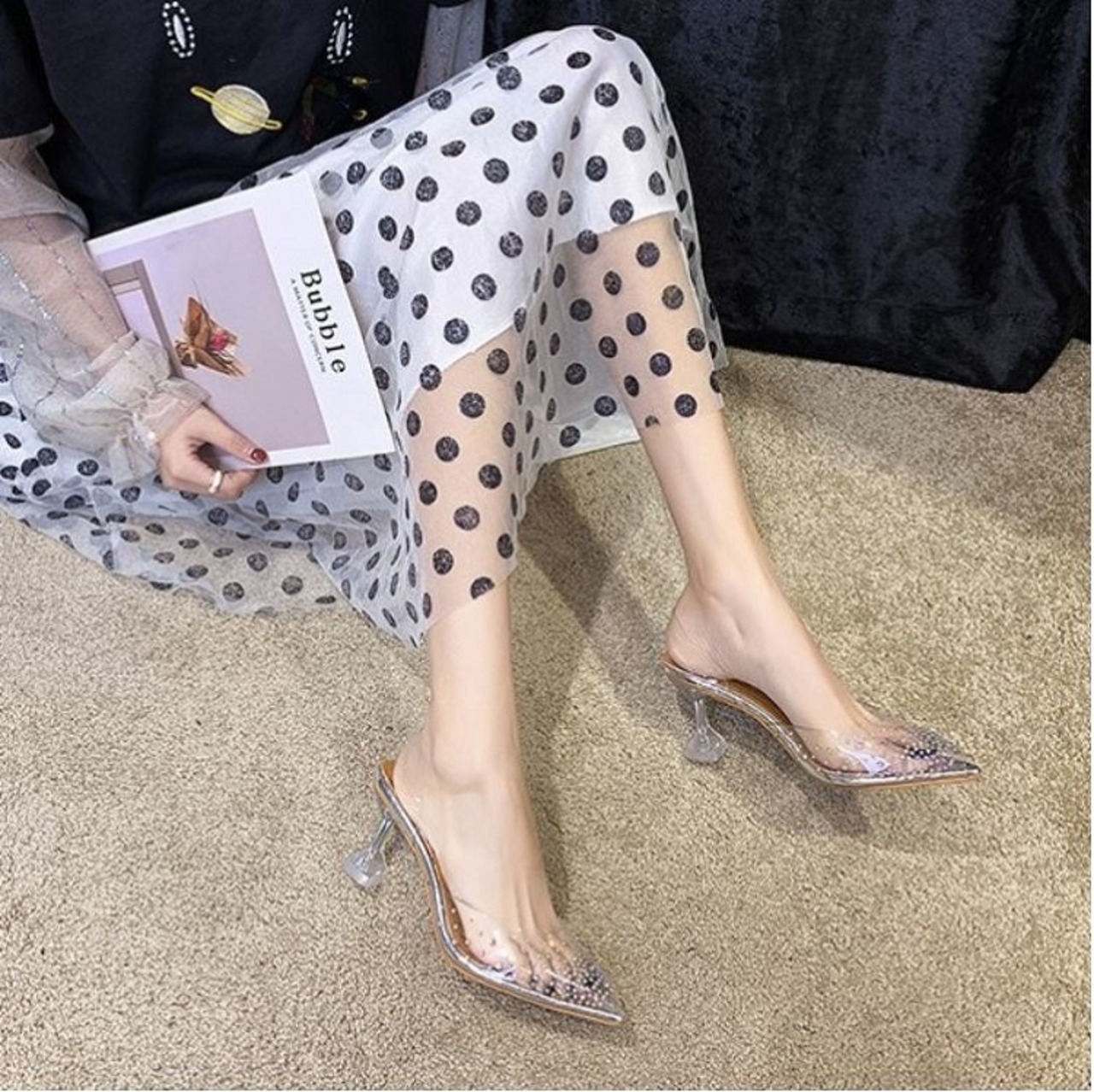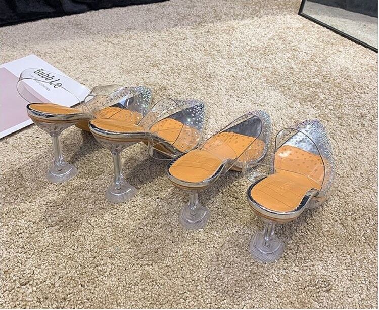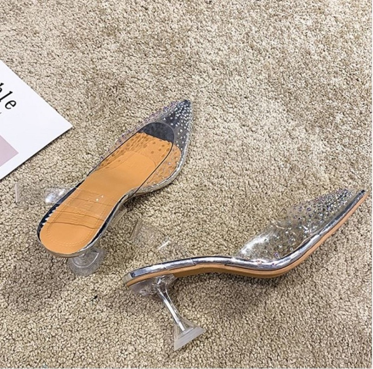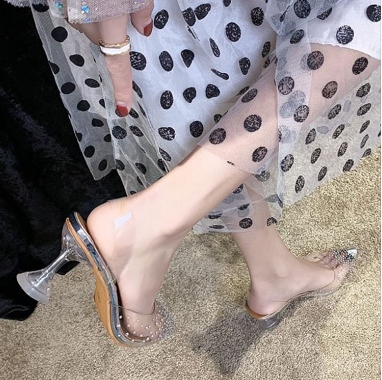 クリアサンダル ハイヒール ポインテッドトゥ ヌーディー ラインストーン シルバー 7cm 9cm 透明 きれいめ カジュアル お出かけ デート リゾート デイリー 夏