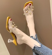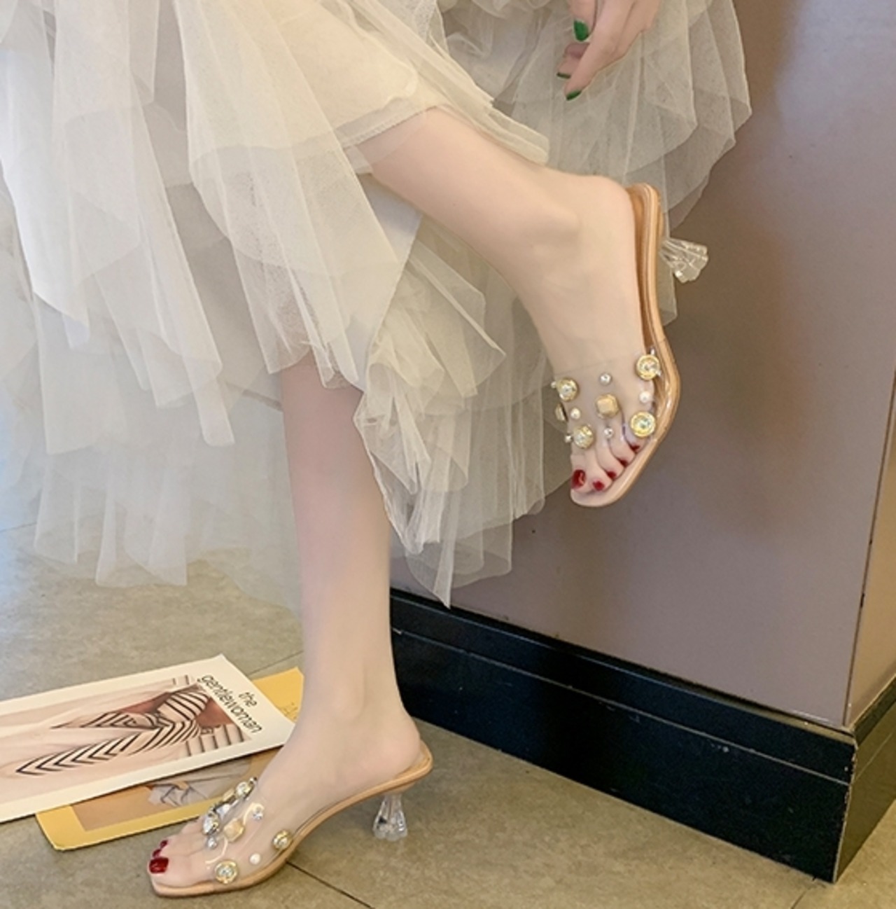 クリア素材で足元を綺麗に見せてくれるオープントゥミュール。
