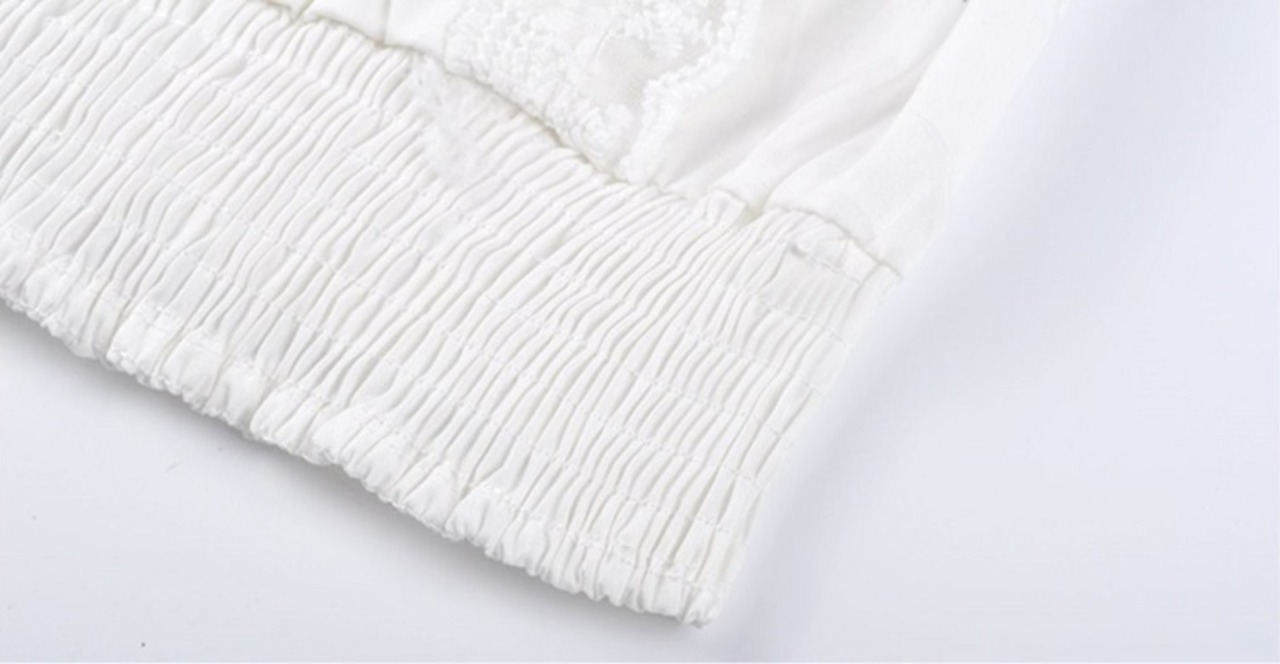 トップス シャーリングブラウス ショート丈 クロップド丈 フレアスリーブ 花柄 刺繍 スクエアネック チラ見せ 半袖 ハイウエスト カジュアル お出かけ デート リゾート デイリー 夏 ホワイト