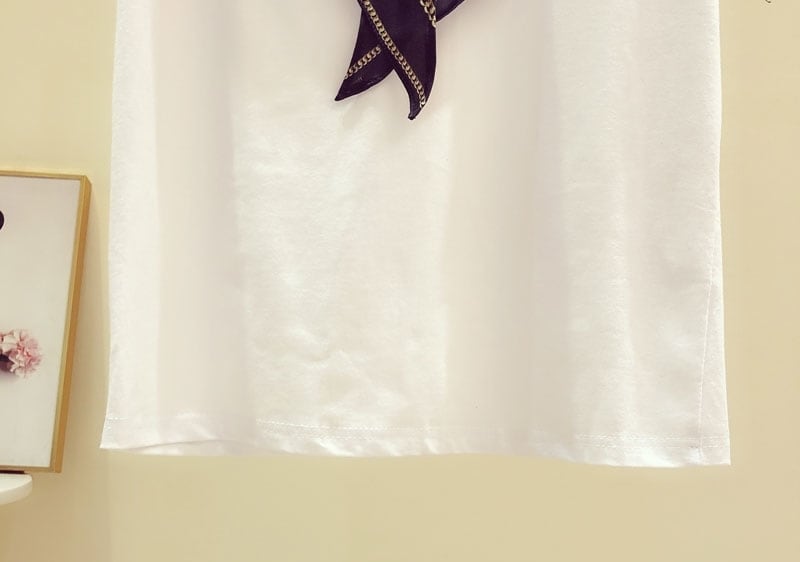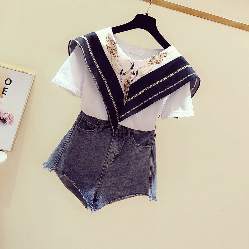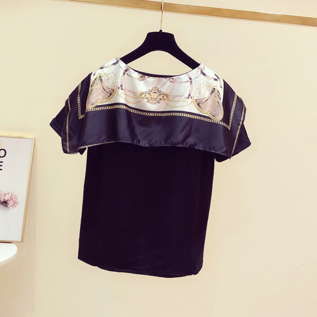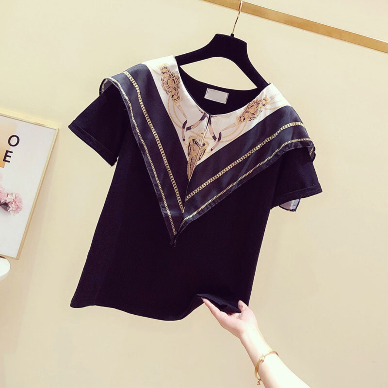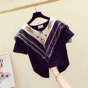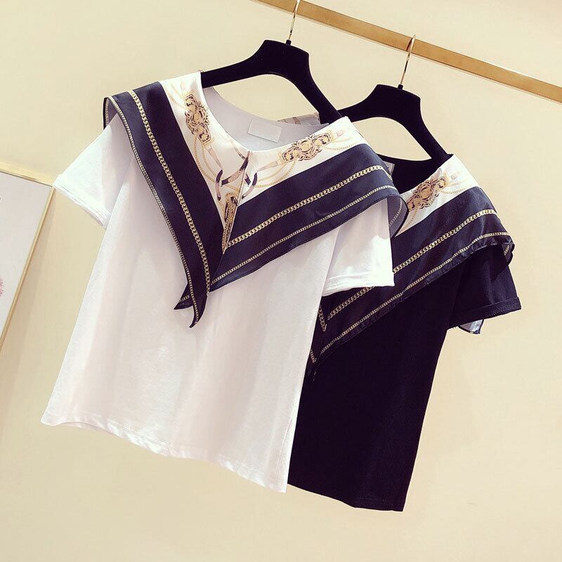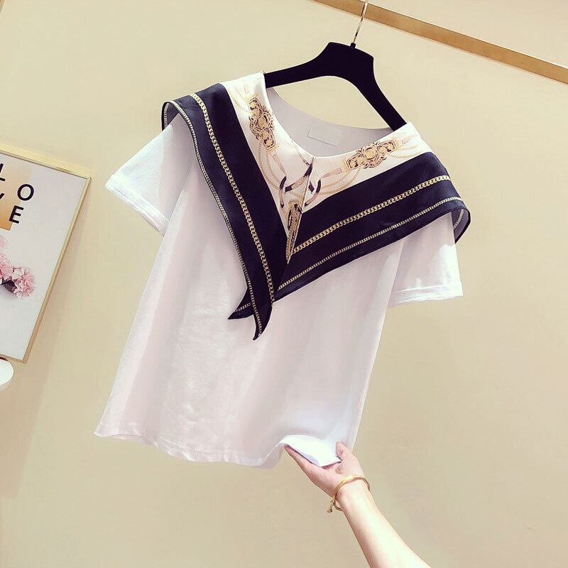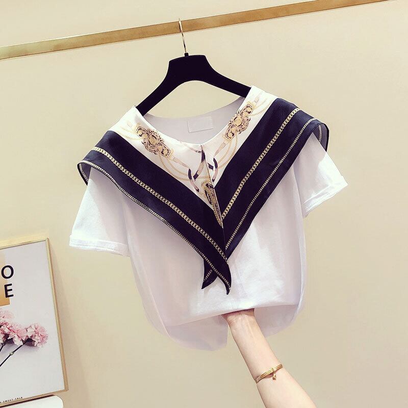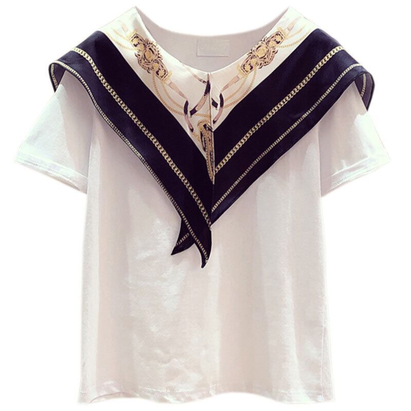 全2色 トップス Tシャツ ブラウス フィシューカラー ユニーク マリン ゆったり ラウンドネック 半袖 大人 カジュアル きれいめ デイリー デート スカーフ お出かけ 夏