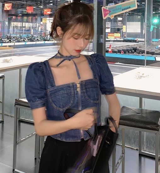 デニム素材でトレンドを感じさせるトップス。