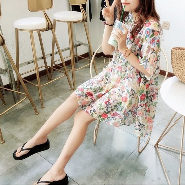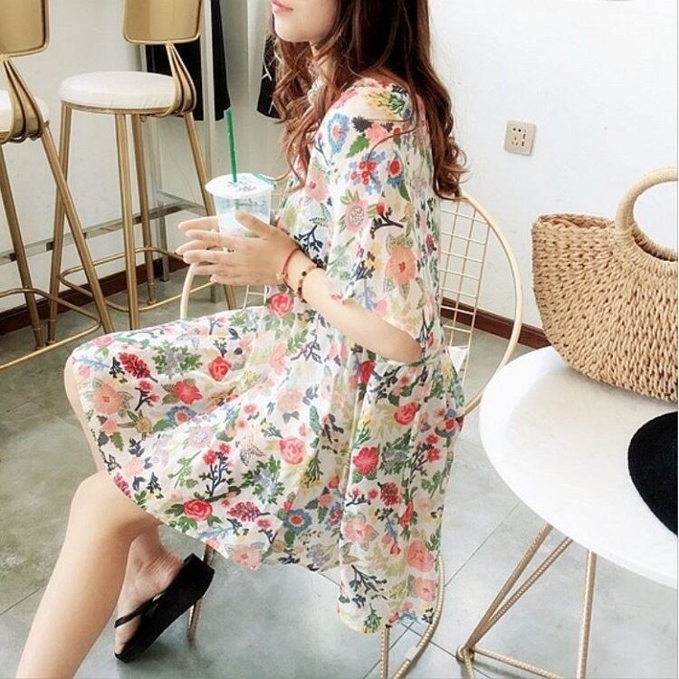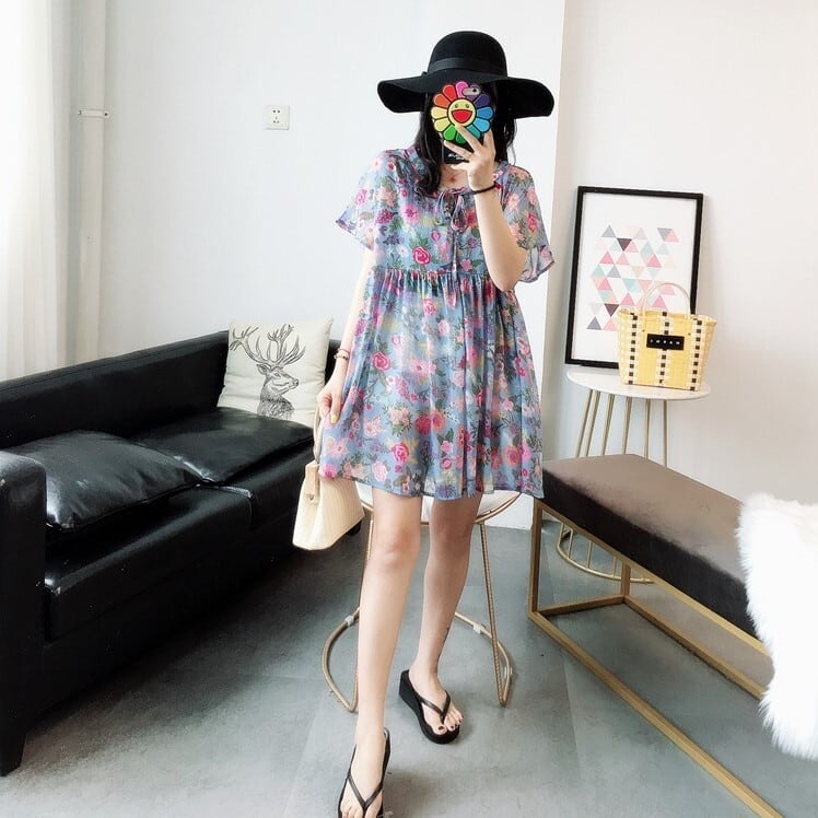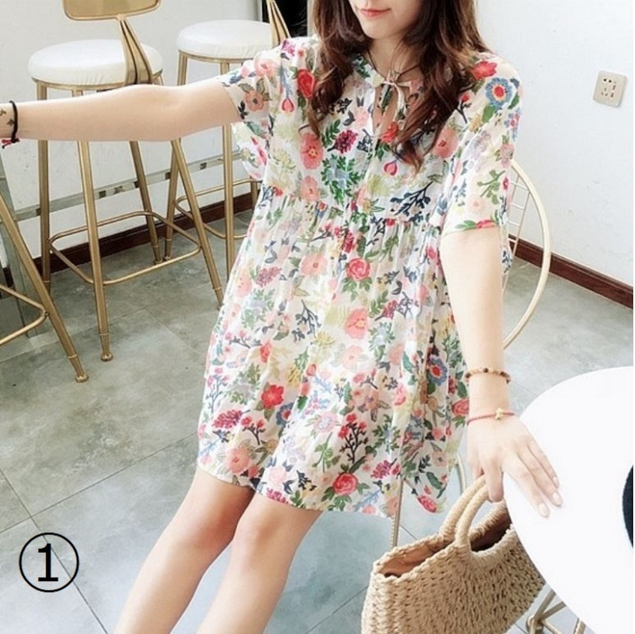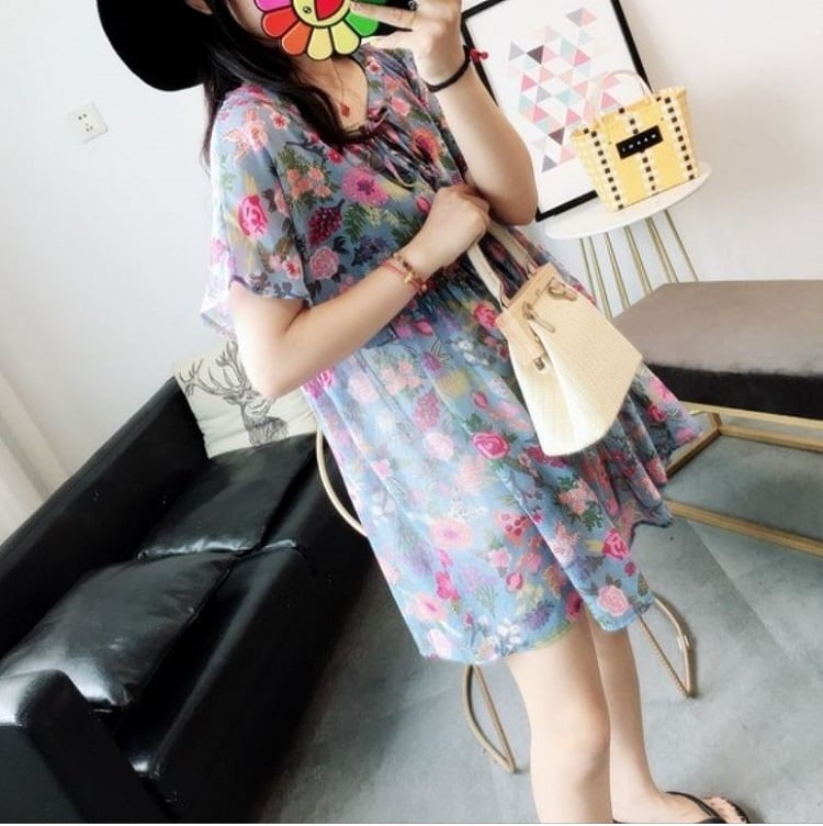 全5色 ミニワンピース チュニック 花柄 リボン Aライン 半袖 ゆったり 体型カバー かわいい フェミニン レトロ カジュアル お出かけ デート 夏
