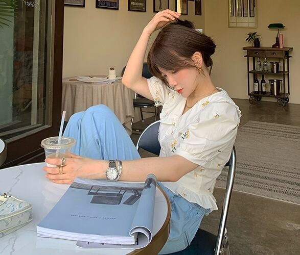 裾にフリルをあしらったデザインが可愛いブラウス。