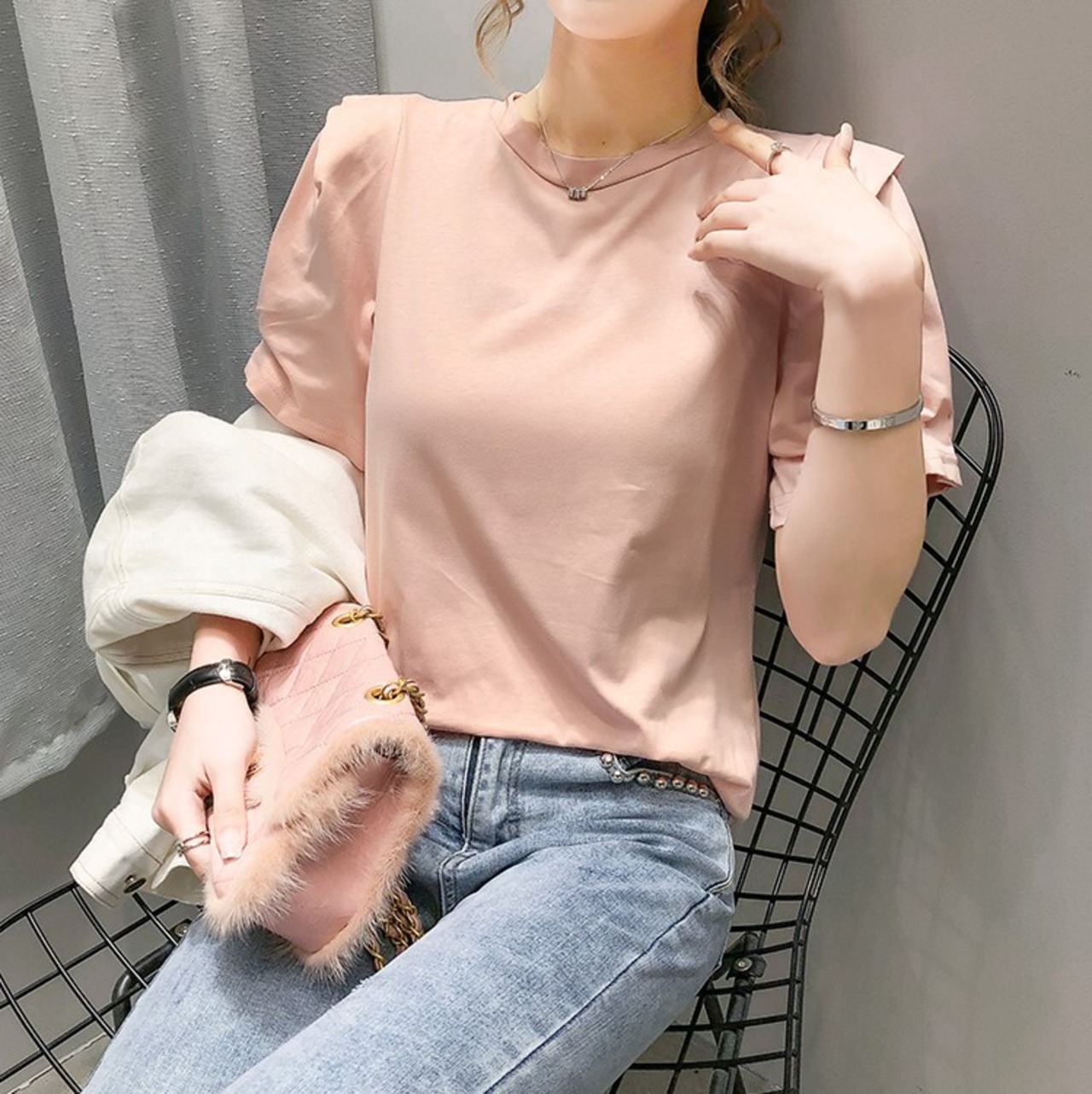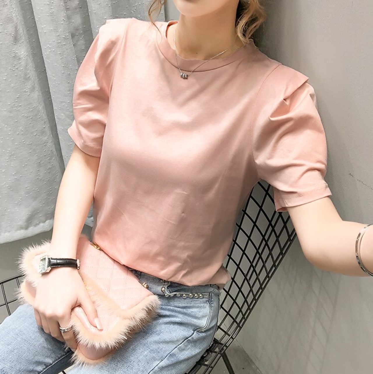 シンプルデザインにパフスリーブをプラスした大人可愛いトップス。