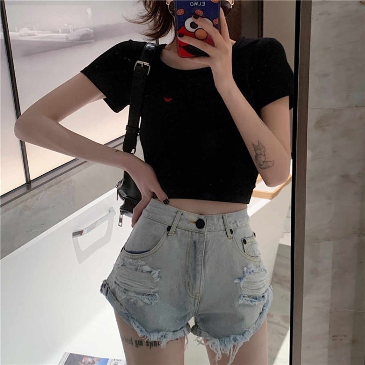 ショート丈のTシャツと合わせた夏らしいコーデがオススメ◎