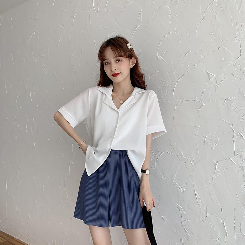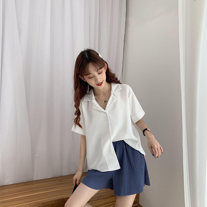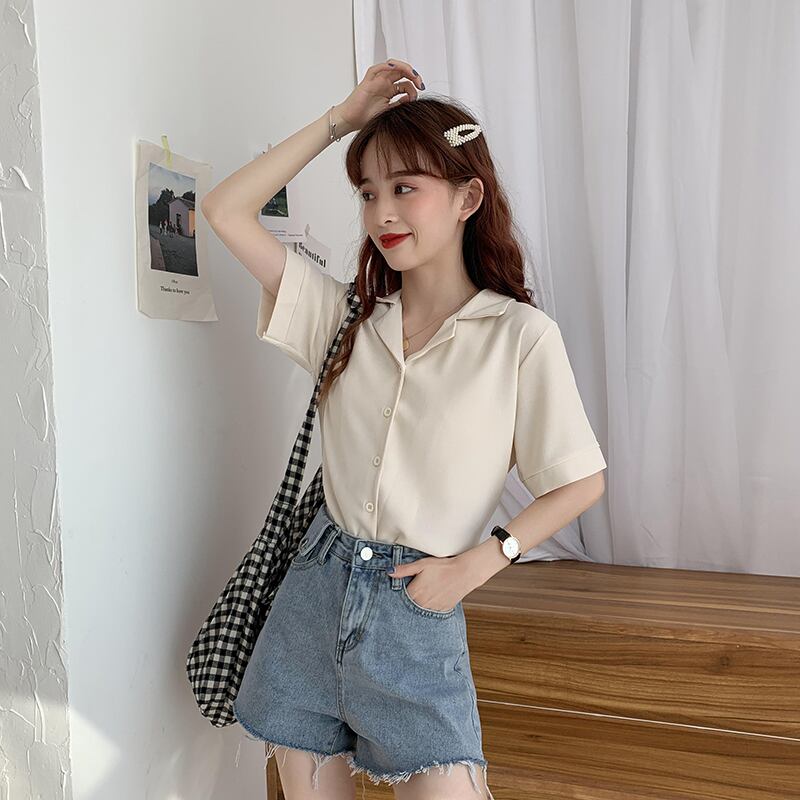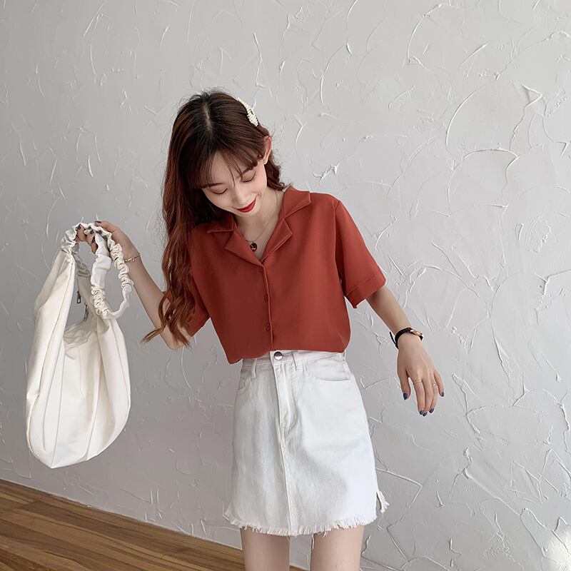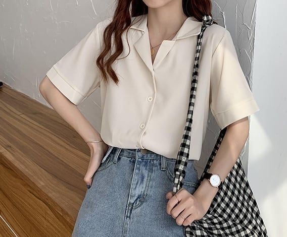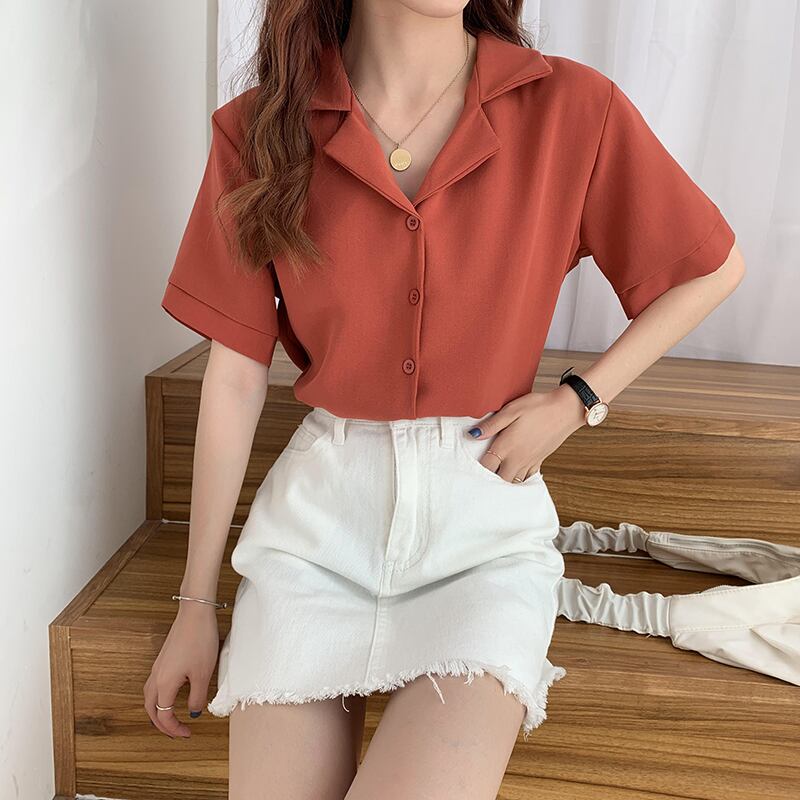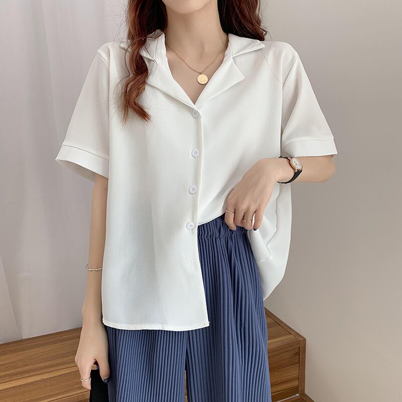 全3色 トップス シャツ フロントボタン 襟 半袖 スタンダードカラー ゆったり シフォン 透け感 シースルー カジュアル 大人 きれいめ シンプル お出かけ デイリー 無地 韓国ファッション 夏