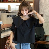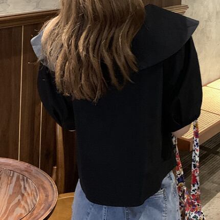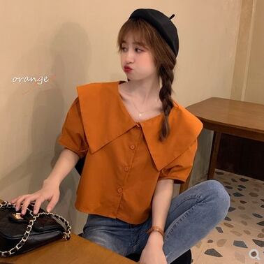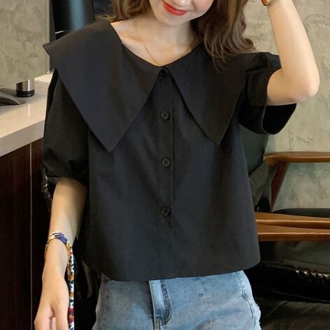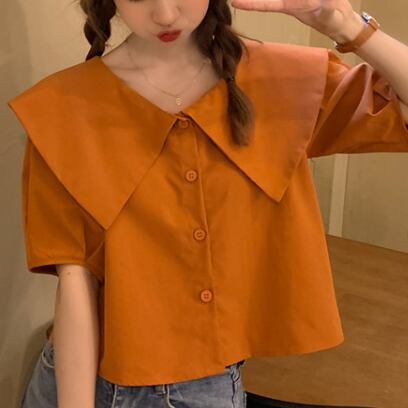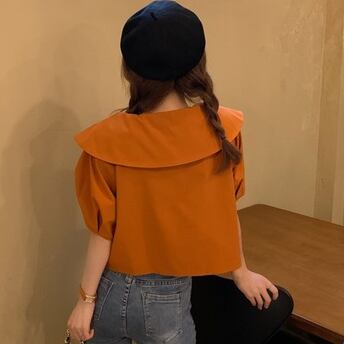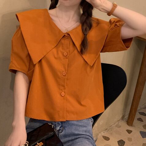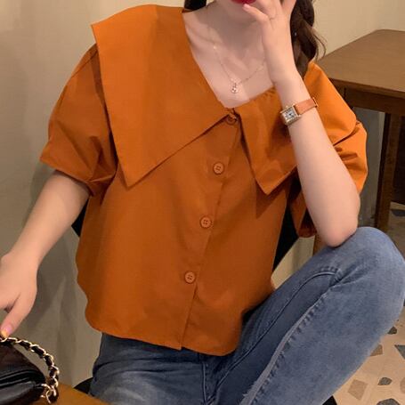 全2色 パフスリーブ ブラウス 綿混 春 夏 カジュアル 半袖 女子会 デート レトロ トップス フリーサイズ お出掛け