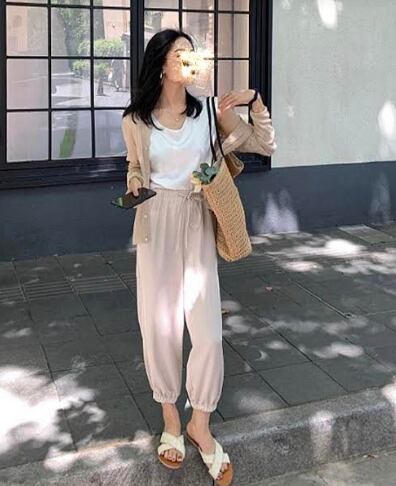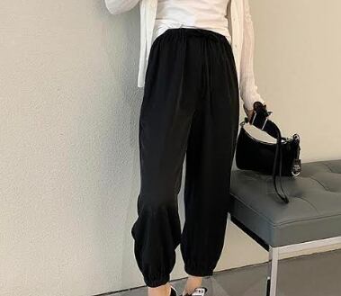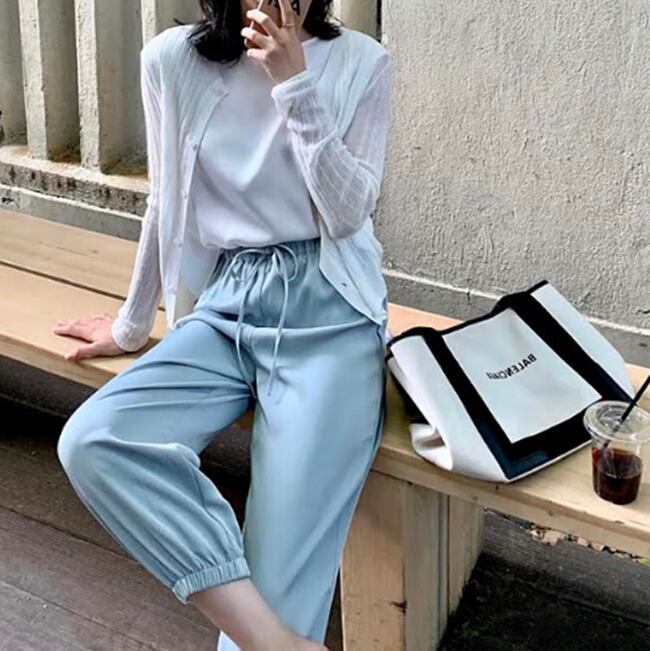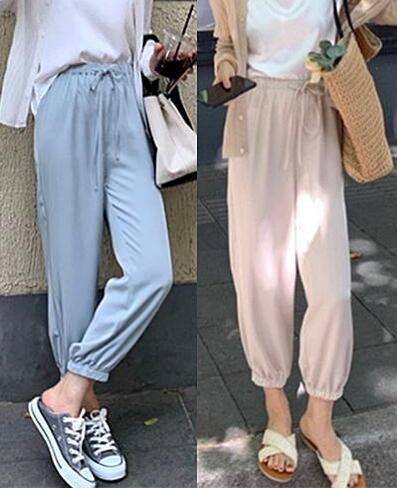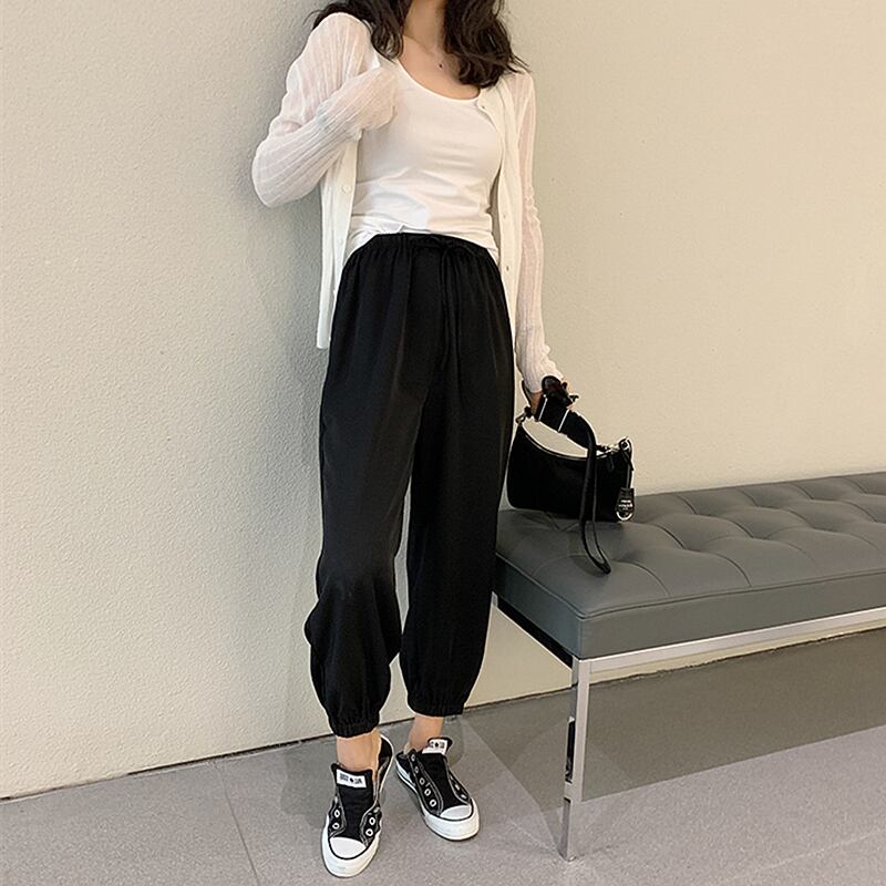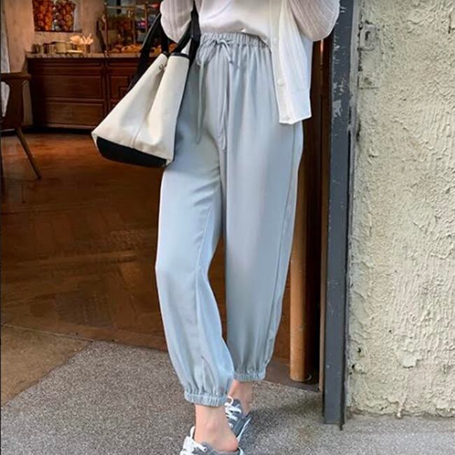 全3色 パンツ ジョガーパンツ ボトムス ハイウエスト ゆったり ウエストゴム アンクル丈 9分丈 カジュアル デイリー ラフ シンプル リラックス ベーシック 大人 学生 秋 韓国ファッション 夏