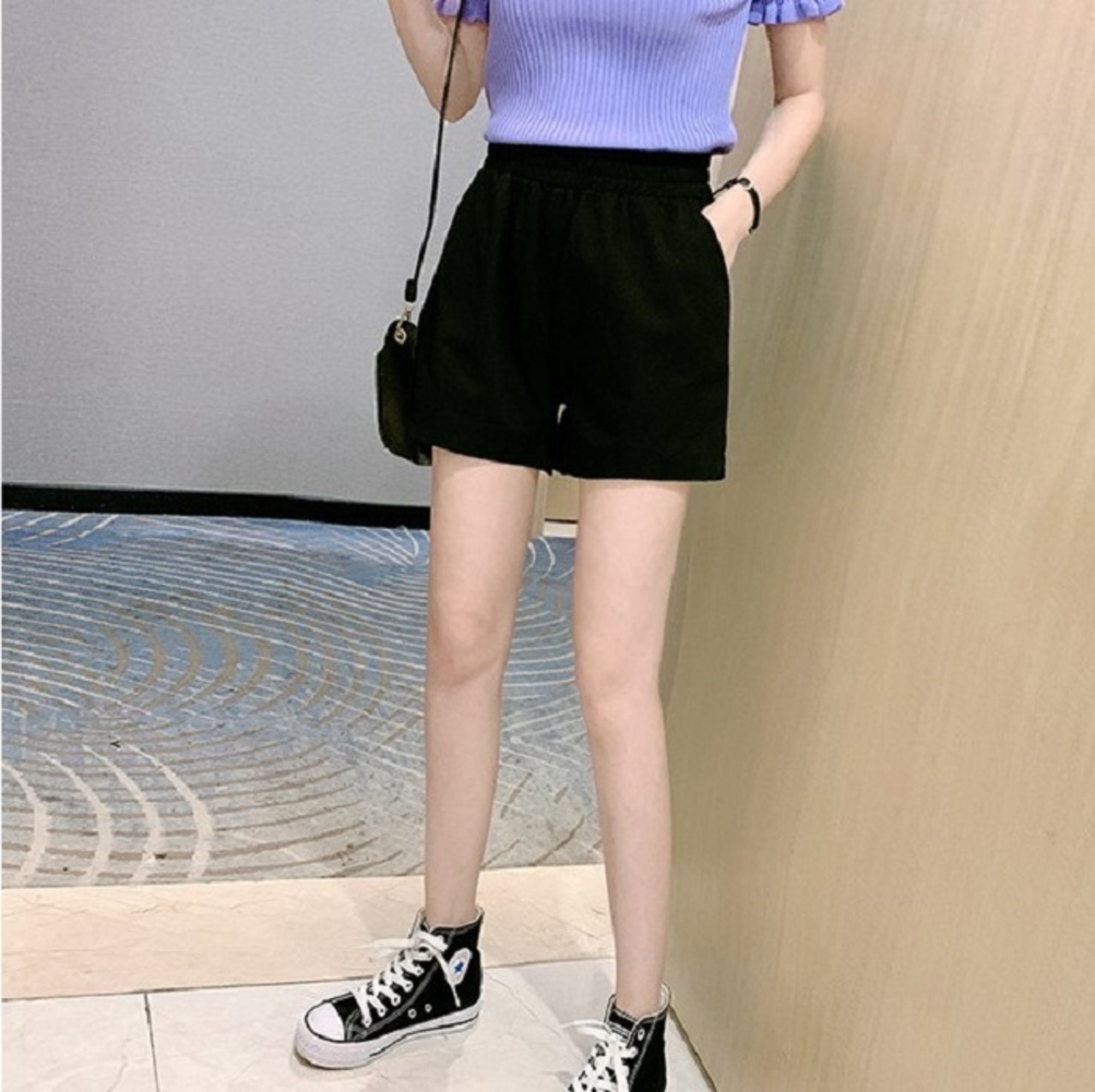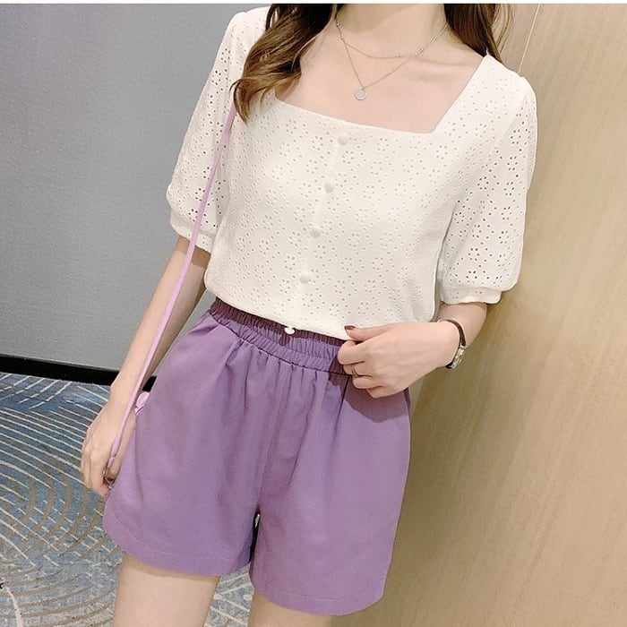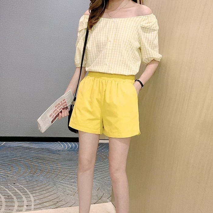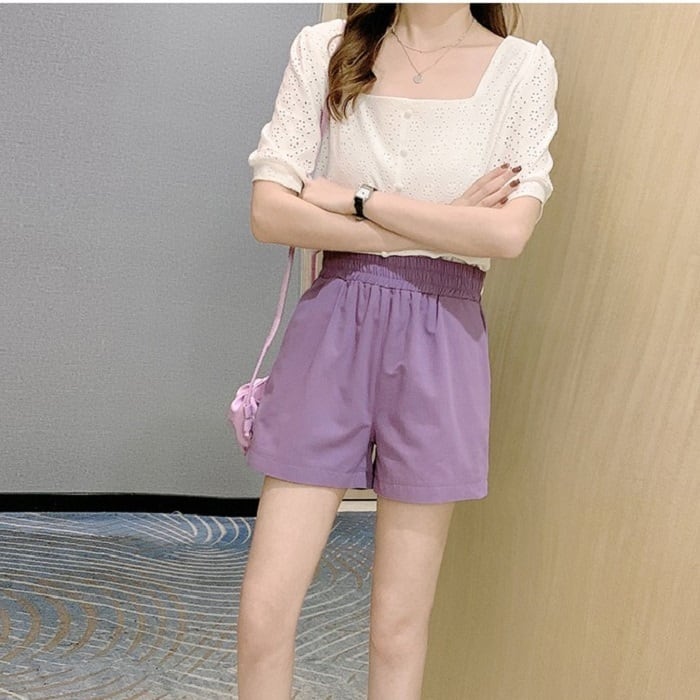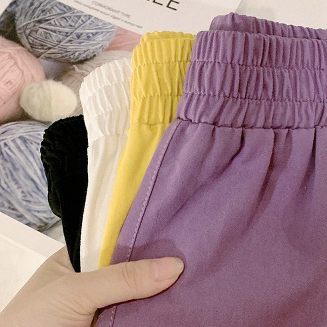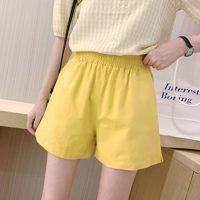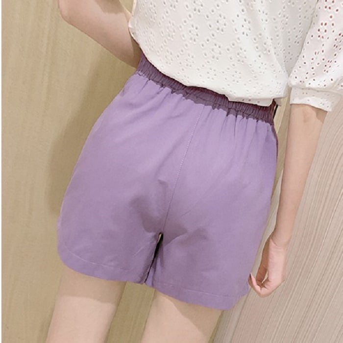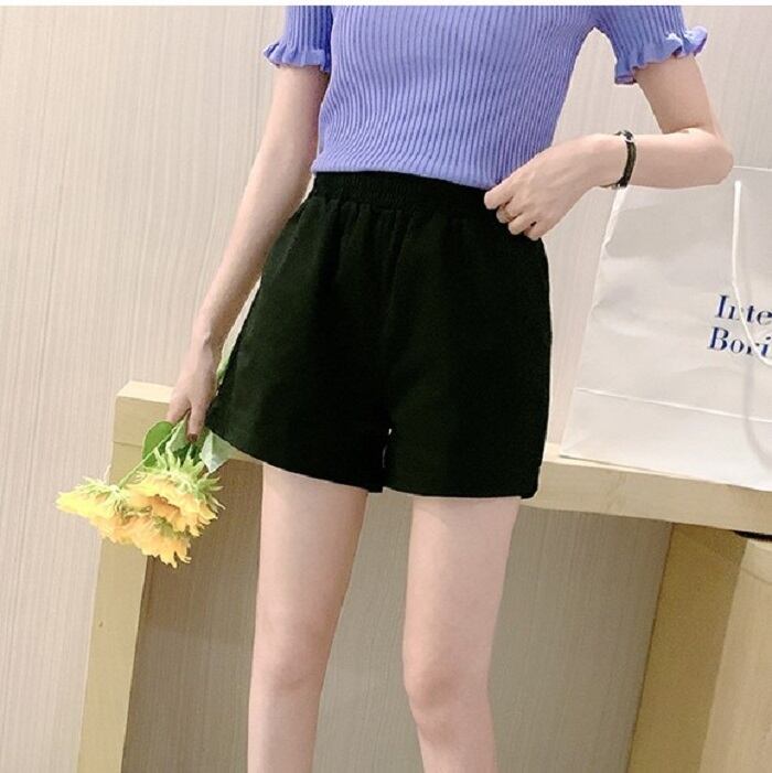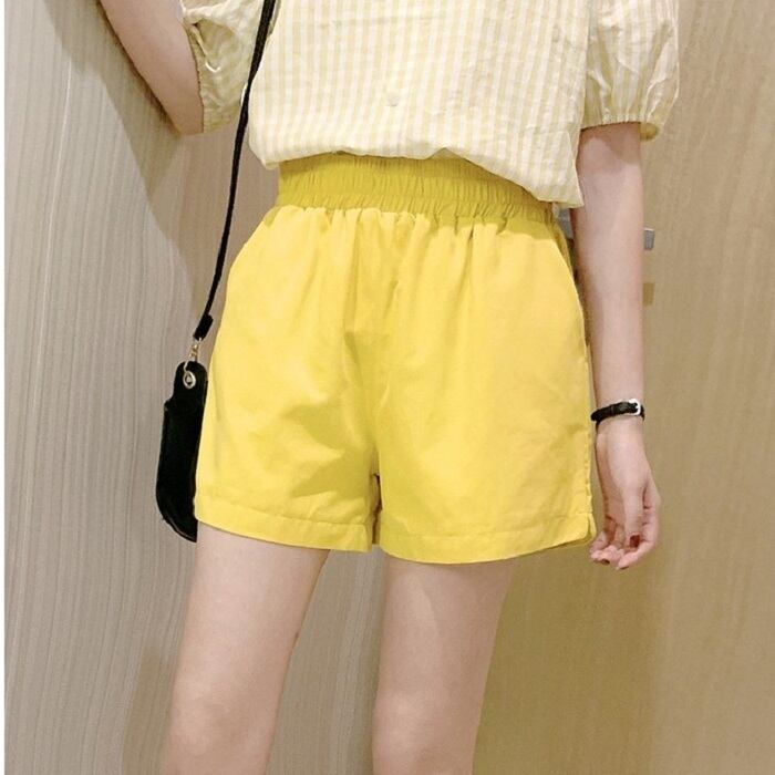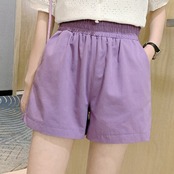 全4色 大きいサイズ ショートパンツ ホットパンツ スウェット ウエストゴム ワイド ゆったり 体型カバー カジュアル シンプル レトロ リゾート デイリー 普段着 夏 パープル イエロー ホワイト ブラック