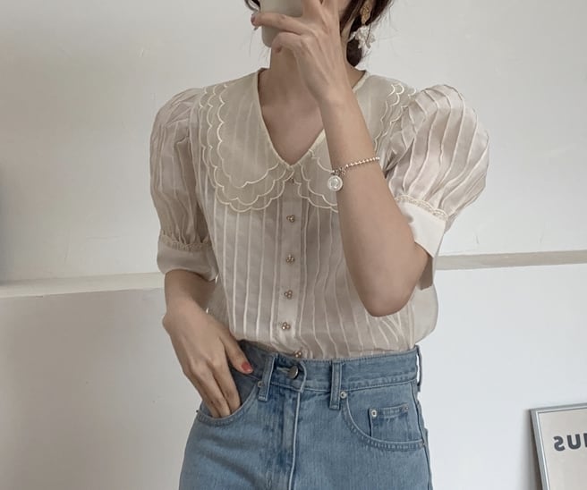 パフスリーブの程よいボリューム感が可愛く、女性らしさをさらにプラスしてくれます♪