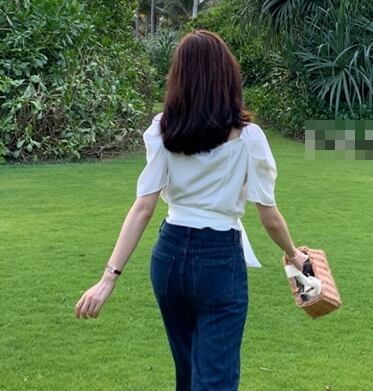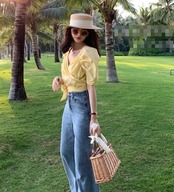 リボンをあしらったデザインがガーリーなブラウス。