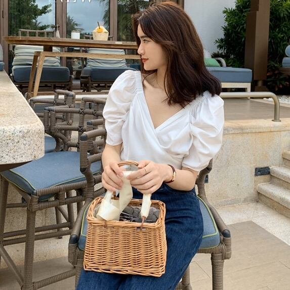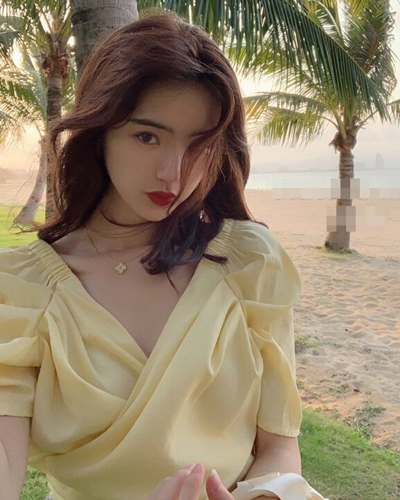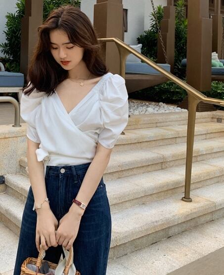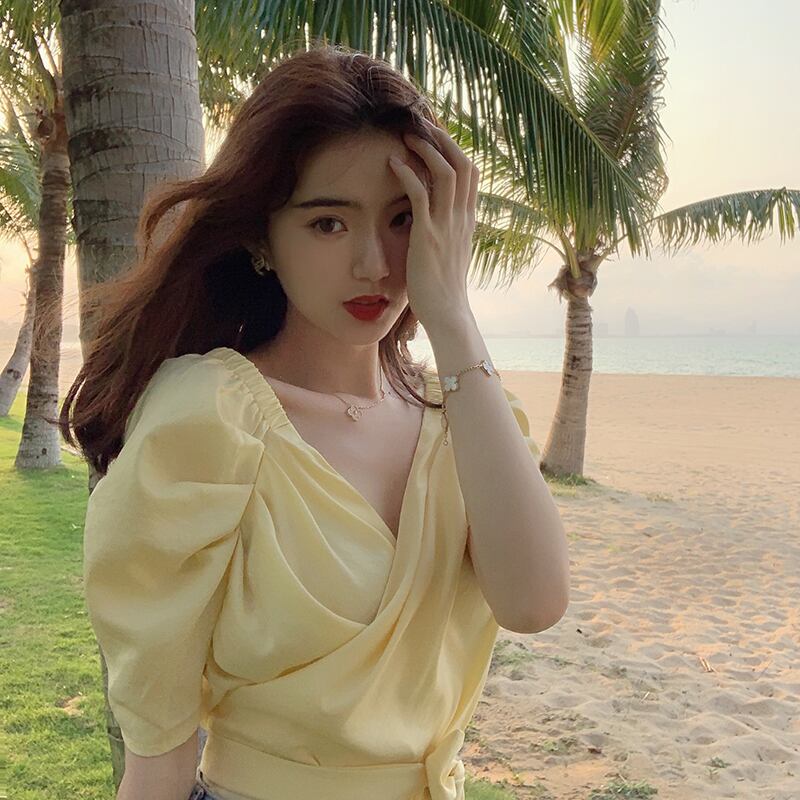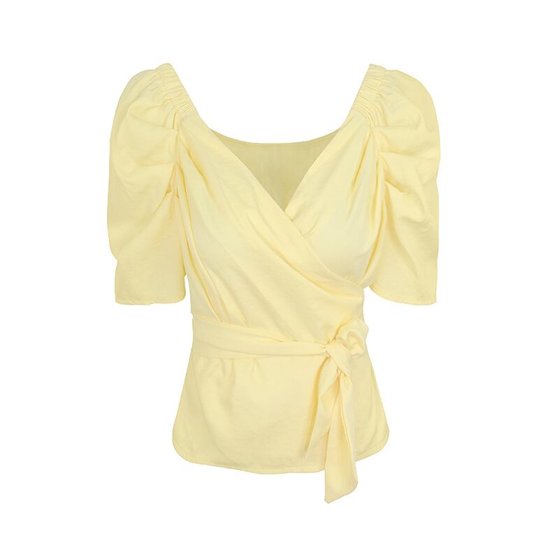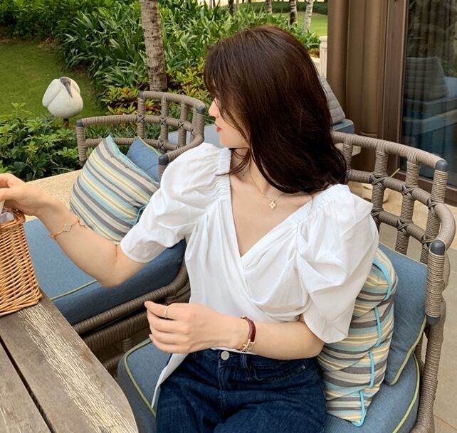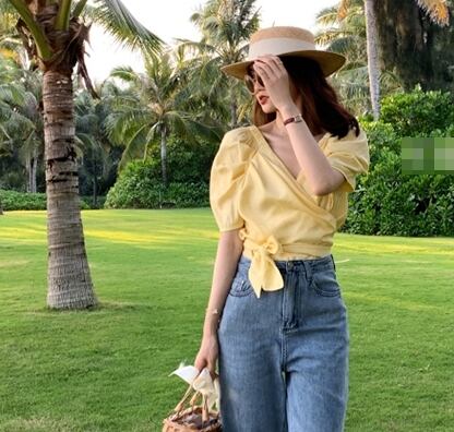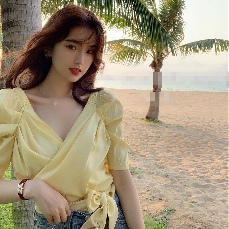 ブラウス トップス カシュクール リボン カウルスリーブ 半袖 Vネック カジュアル きれいめ 上品 可愛い ガーリー デート お出かけ 無地 リゾート 夏