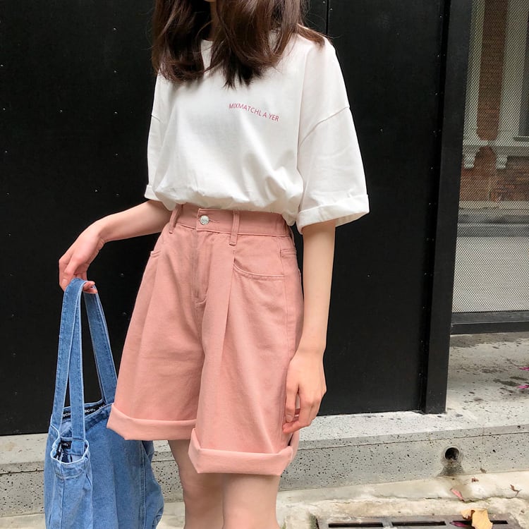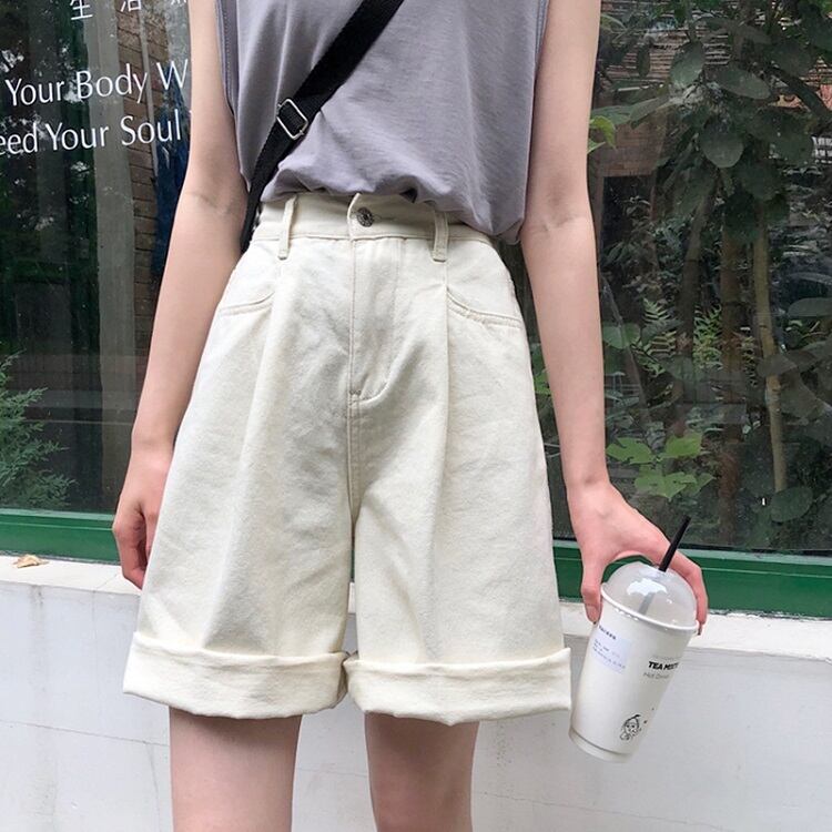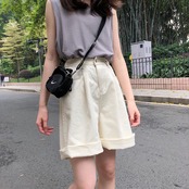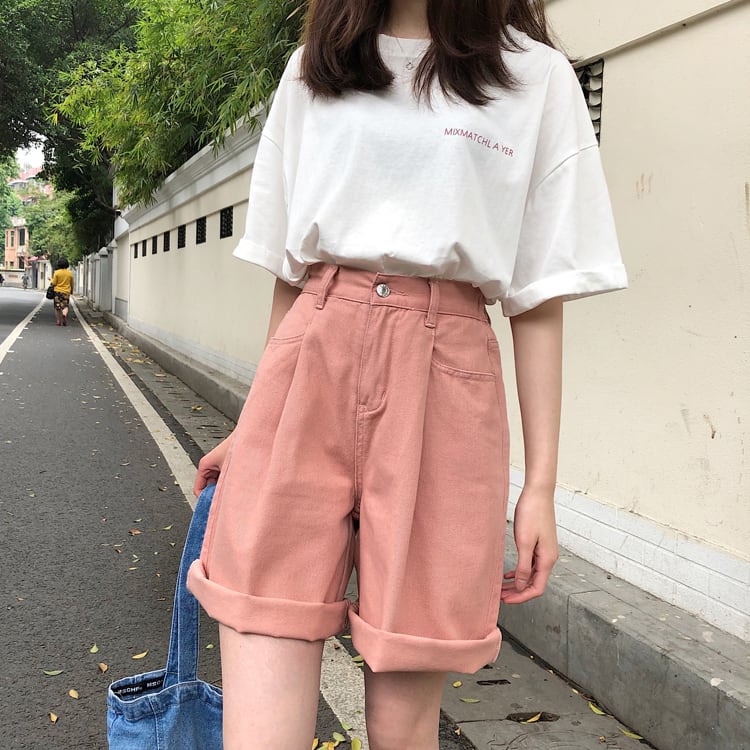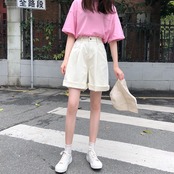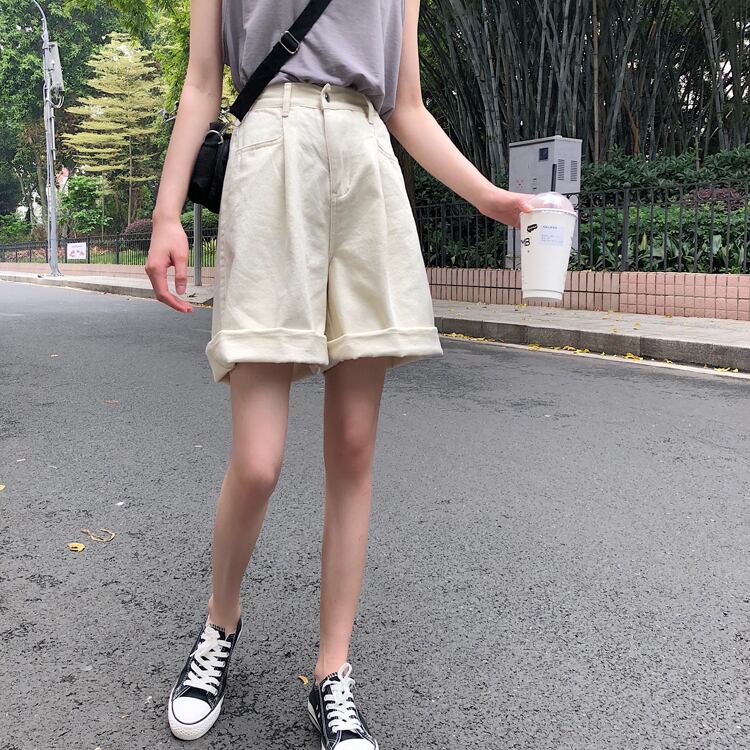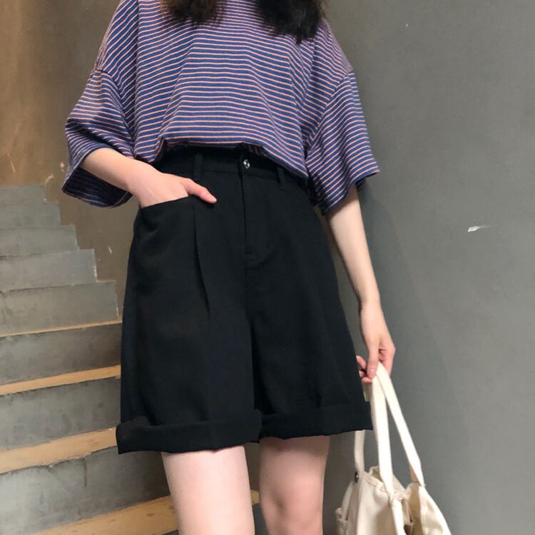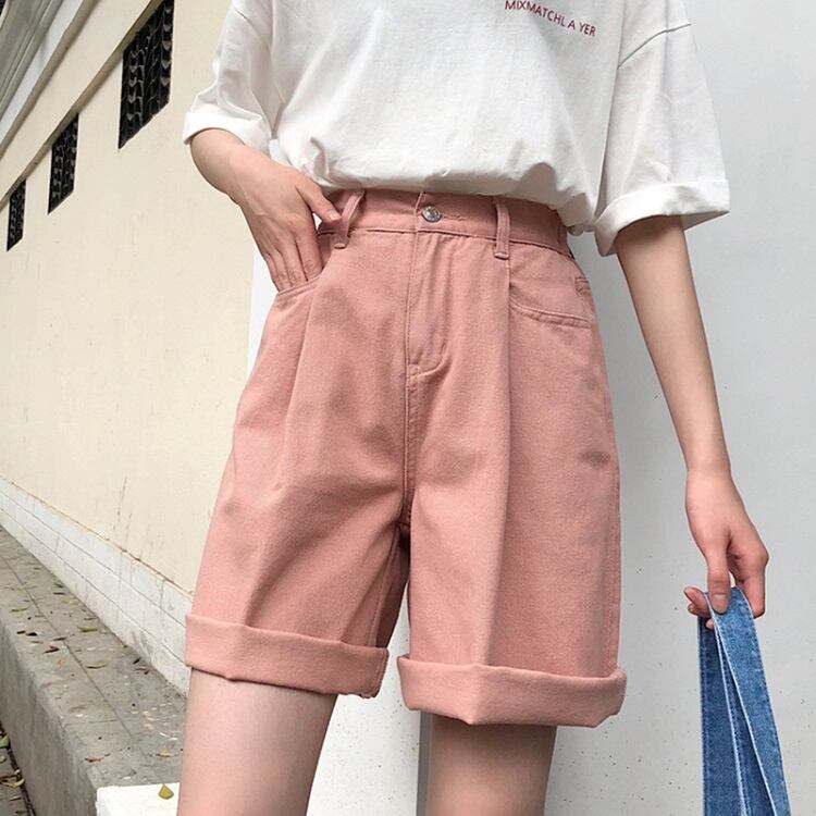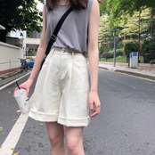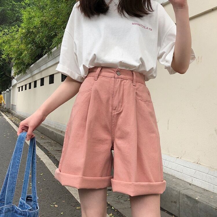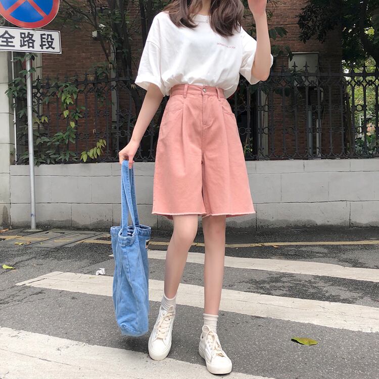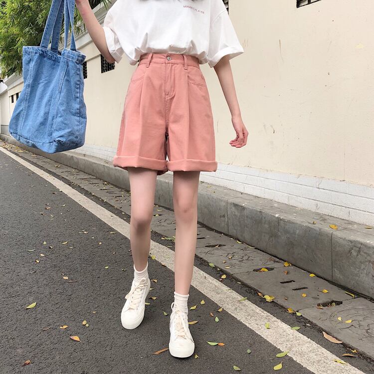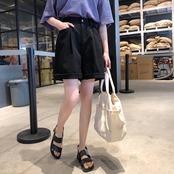 全3色 ショートパンツ ワイドパンツ ひざ丈 ウエストゴム ハイウエスト 無地 カジュアル シンプル レトロ リゾート お出かけ デイリー 普段着 夏 ピンク ブラック ベージュ
