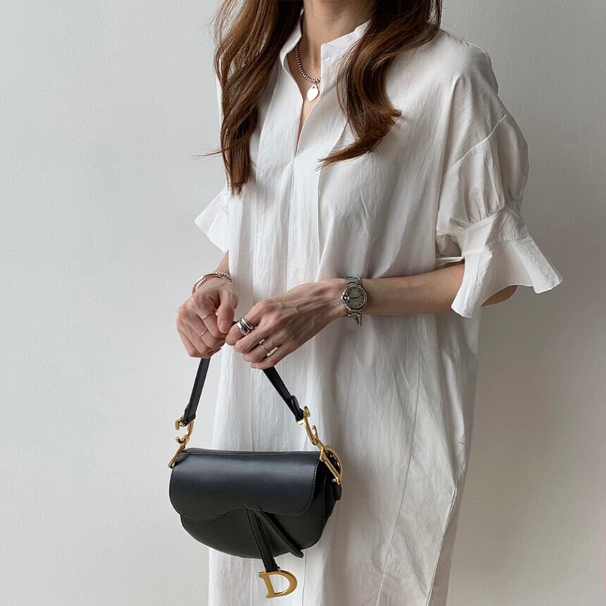 フレアスリーブが可愛いアクセント、女性らしさを演出します。