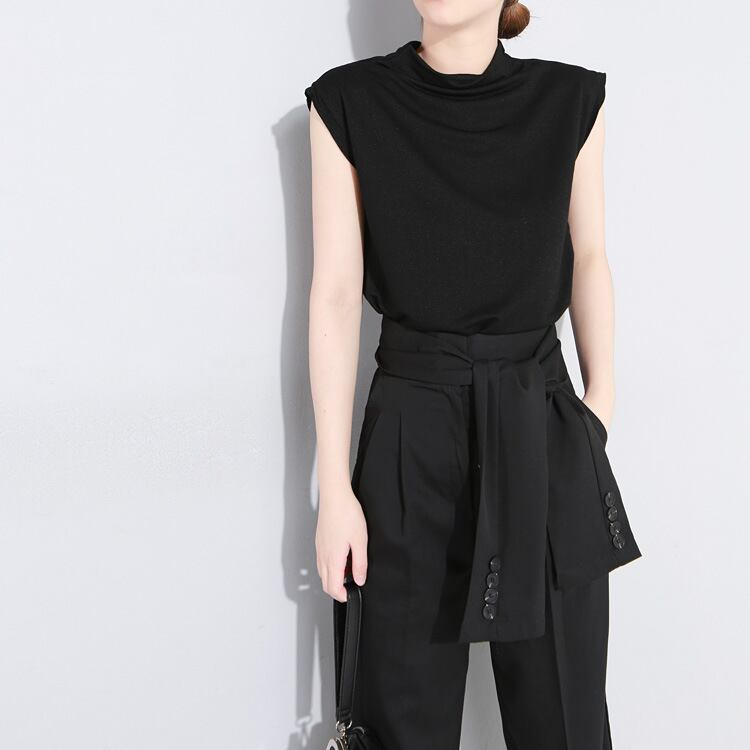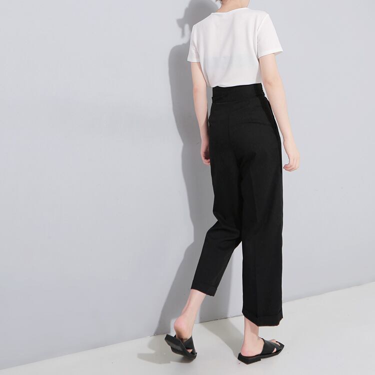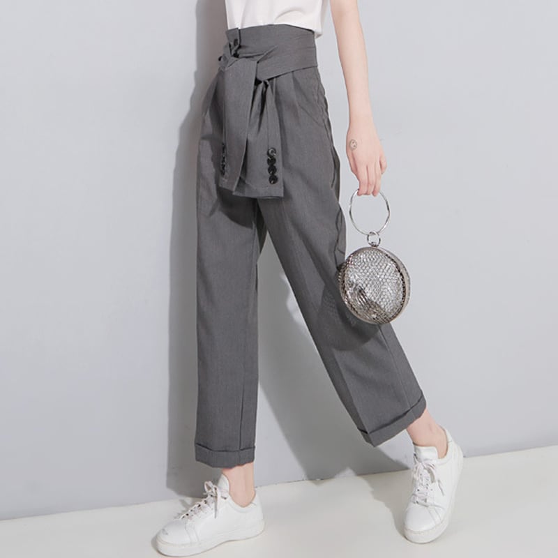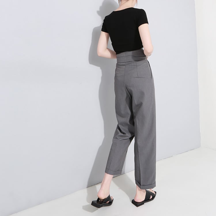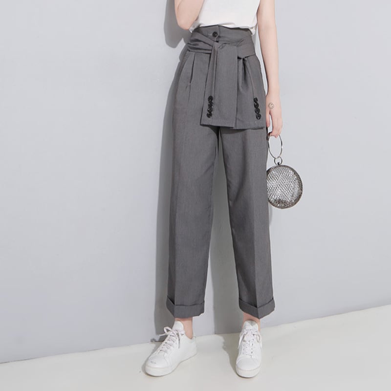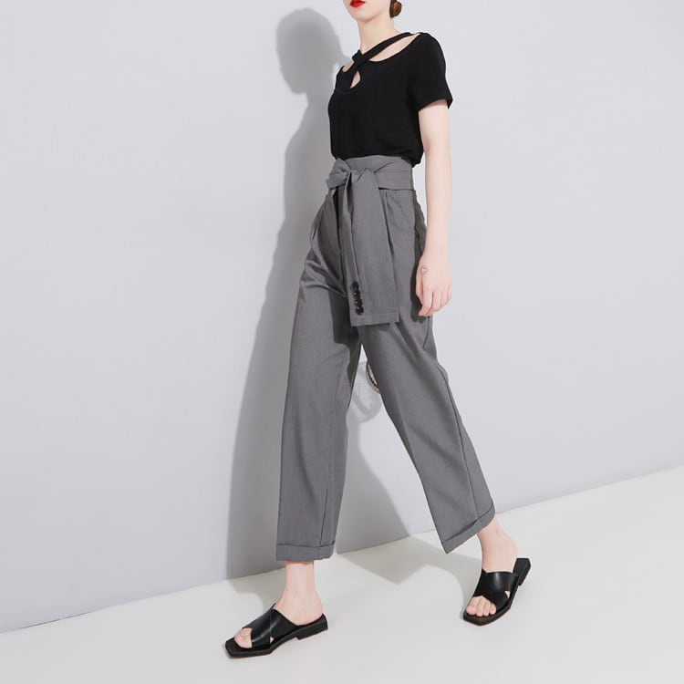 全2色 パンツ スラックスパンツ フロント結び ハイウエスト ウエストコンシャス ロールアップ 9分丈 アンクル丈 タックパンツ シック カジュアル 大人 ユニーク 個性的 お出かけ きれいめ 夏