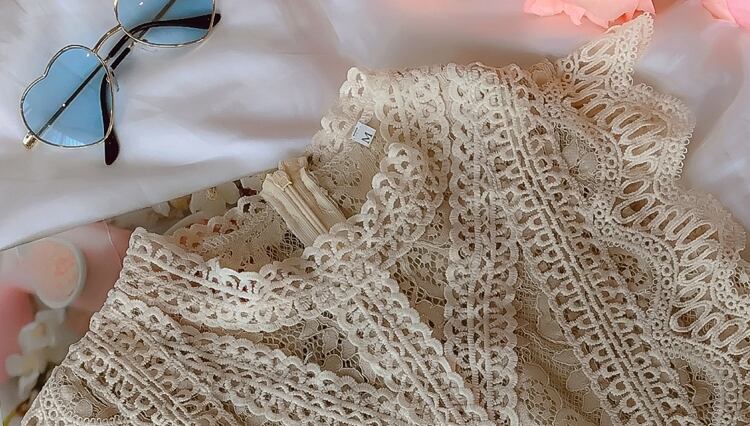レースをあしらったデザインが上品なワンピース。