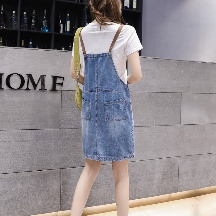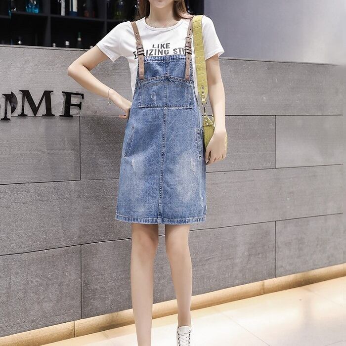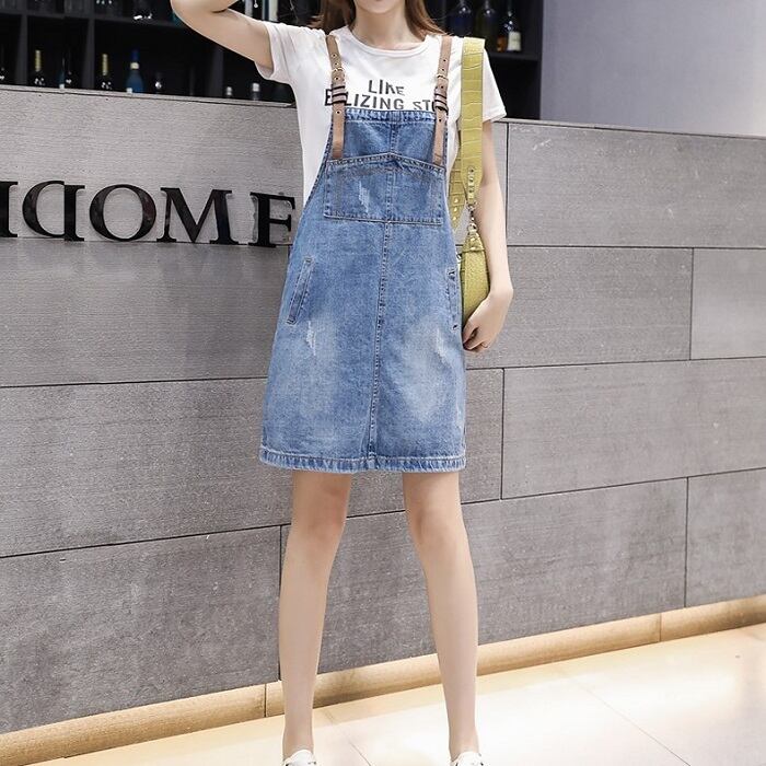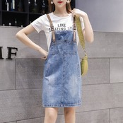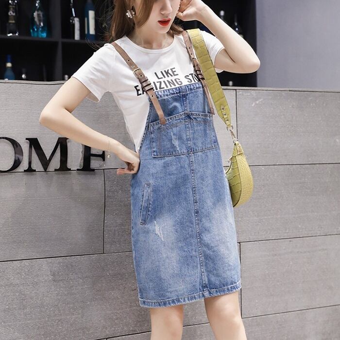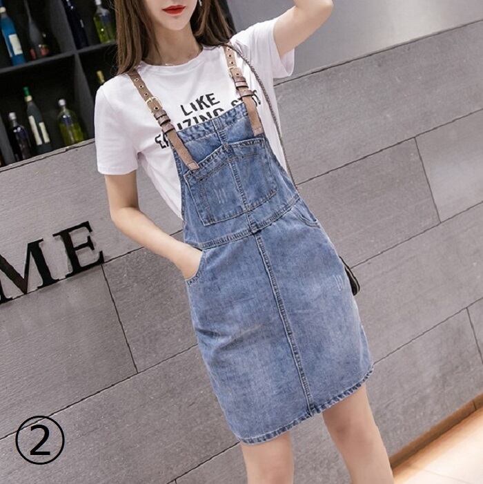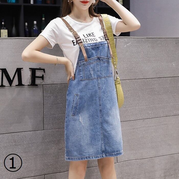 全2種 デニムスカート ミニスカート ジャンパースカート サロペット Tシャツ 半袖 ラウンドネック カジュアル シンプル レトロ お出かけ デート リゾート デイリー 夏 ブルー ホワイト