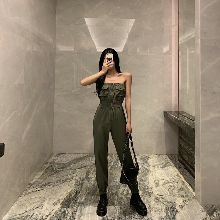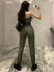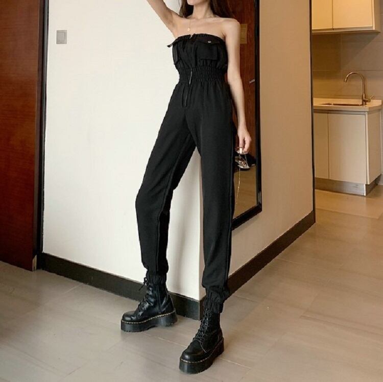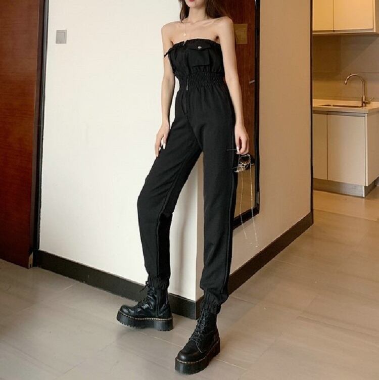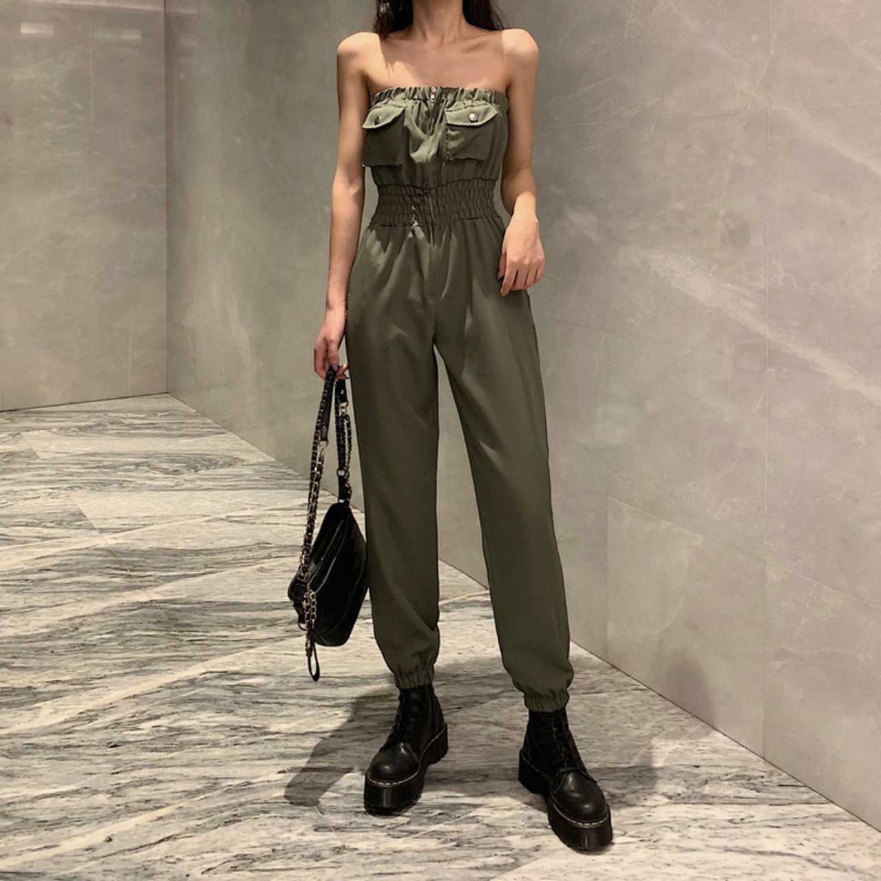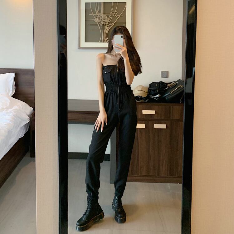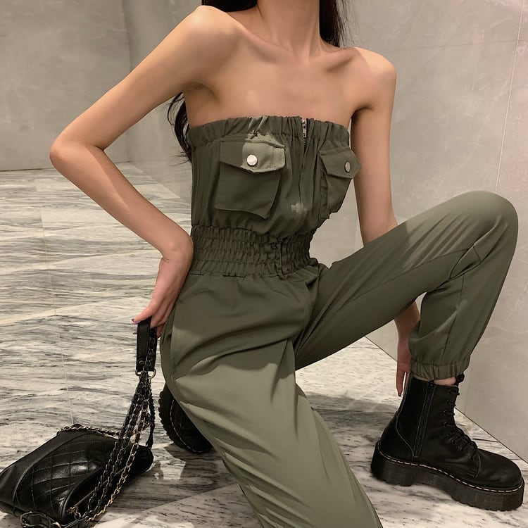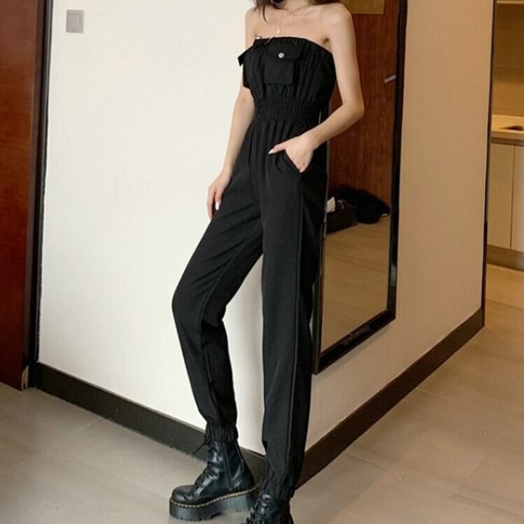 全2色 ジャンプスーツ オールインワン オフショルダー チューブトップ ロング丈 ハイウエスト セクシー カジュアル シンプル レトロ お出かけ リゾート デイリー 夏 グリーン ブラック
