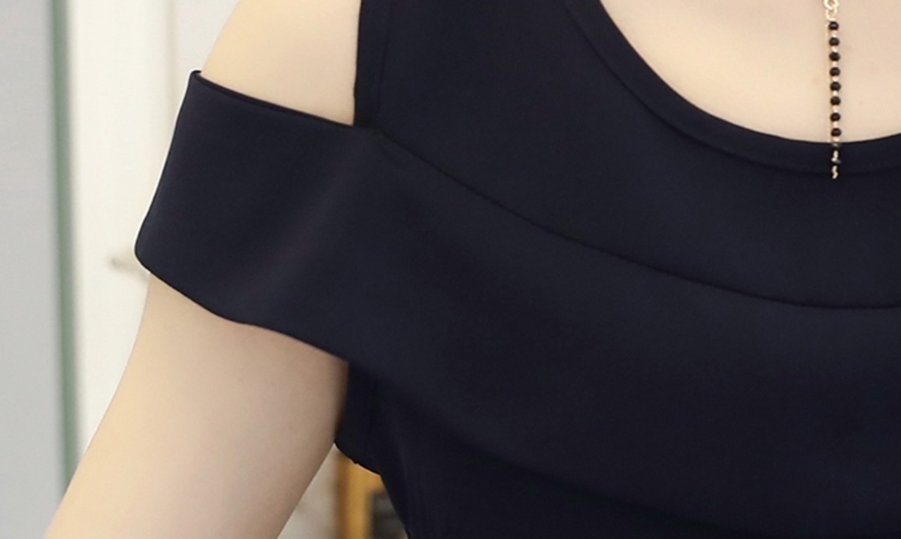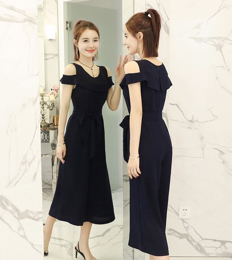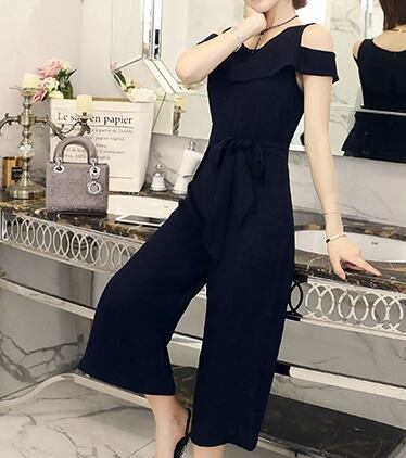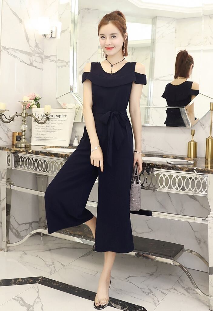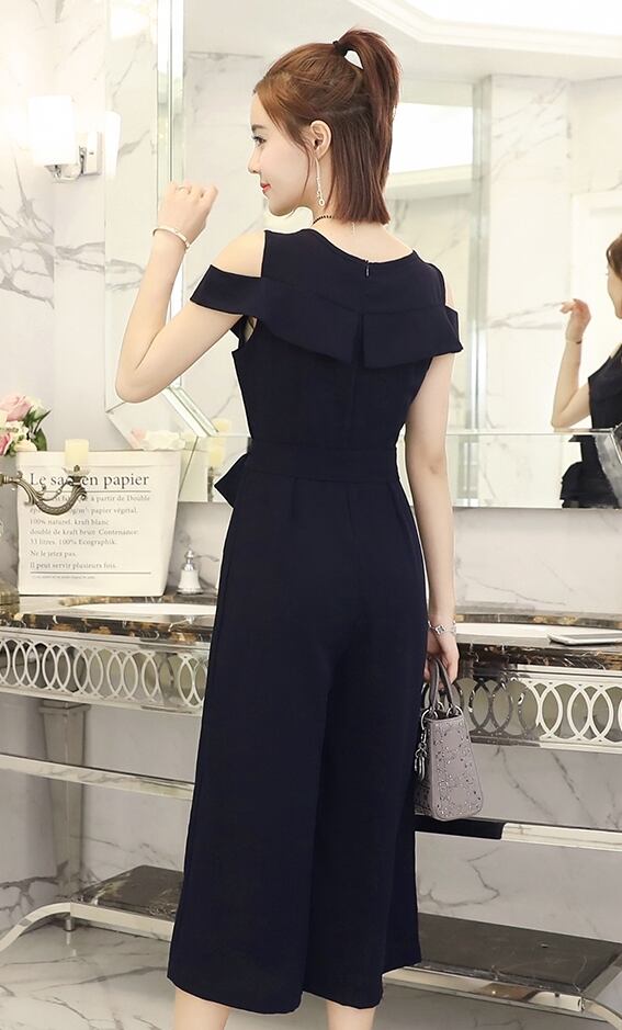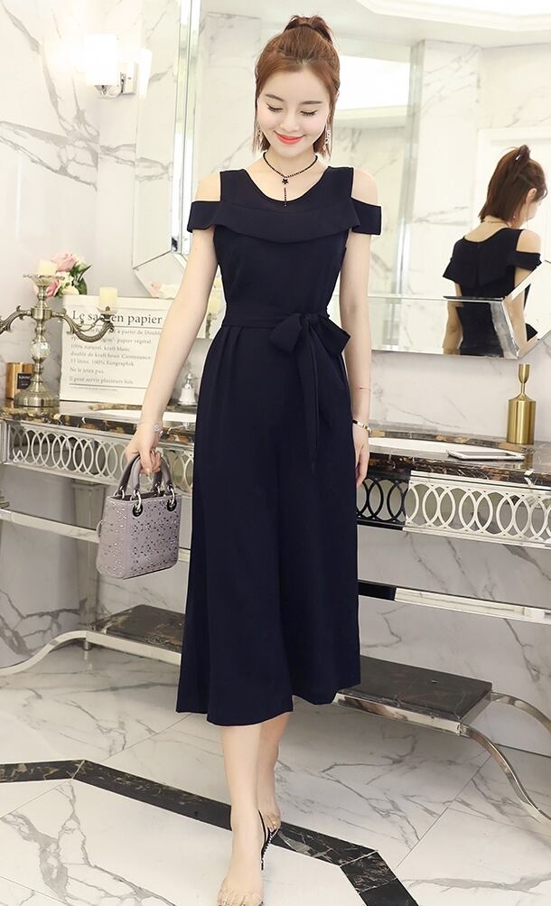 オープンショルダーデザインがおしゃれなジャンプスーツ。