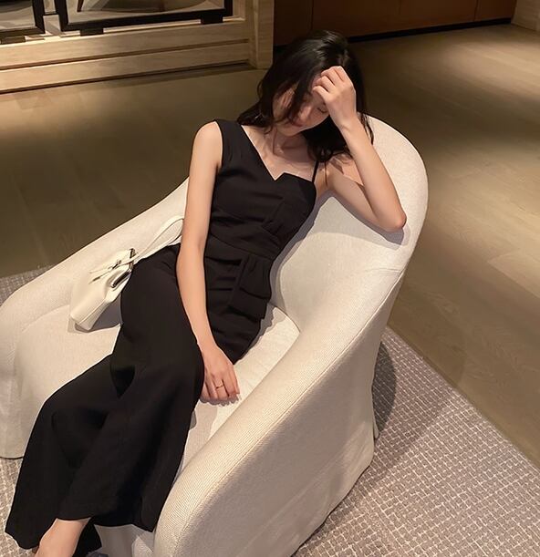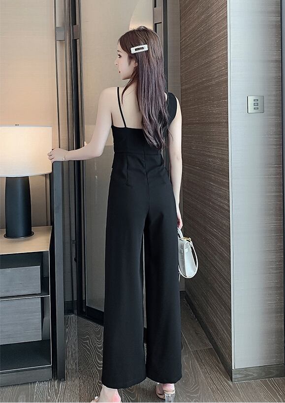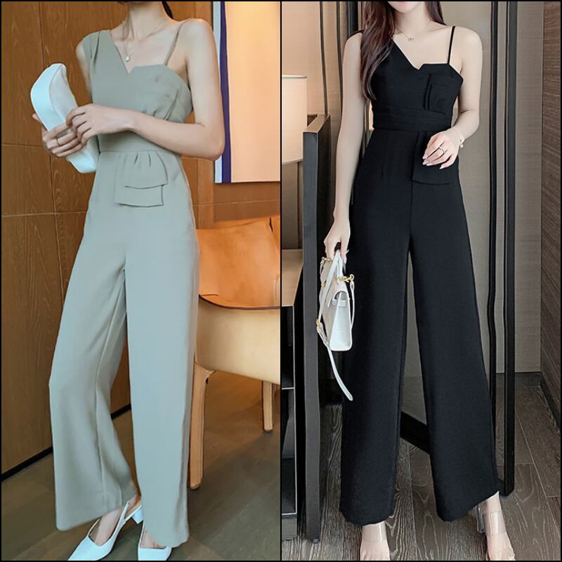 全2色 ジャンプスーツ オーバーオール サロペット ハイウエスト アシンメトリー ノースリーブ ワイドレッグパンツ くすみカラー ブラック カジュアル ドレッシー 大人可愛い エレガント シンプル 夏 お出かけ リゾート 女子会 パーティー 二次会 買い物