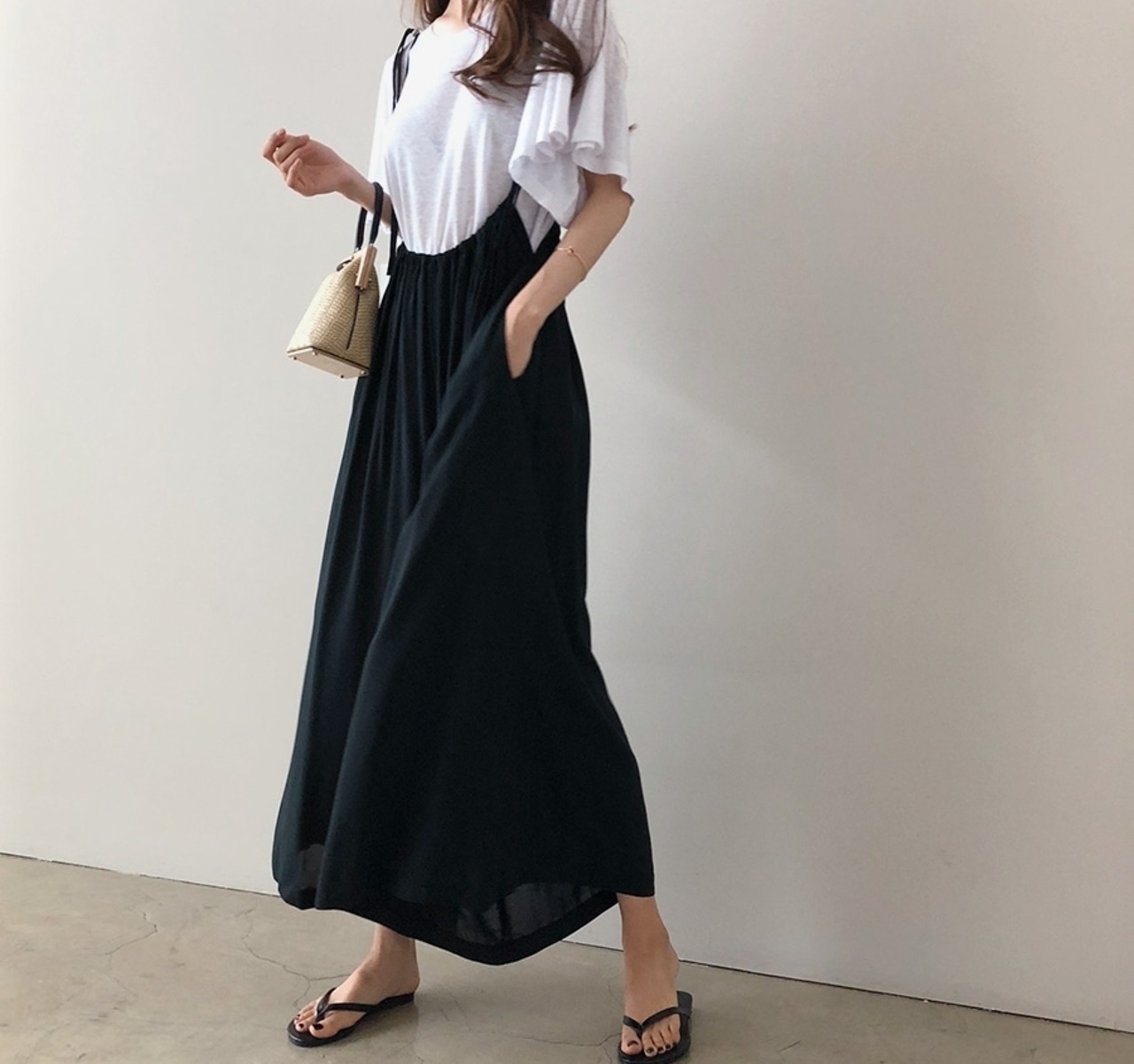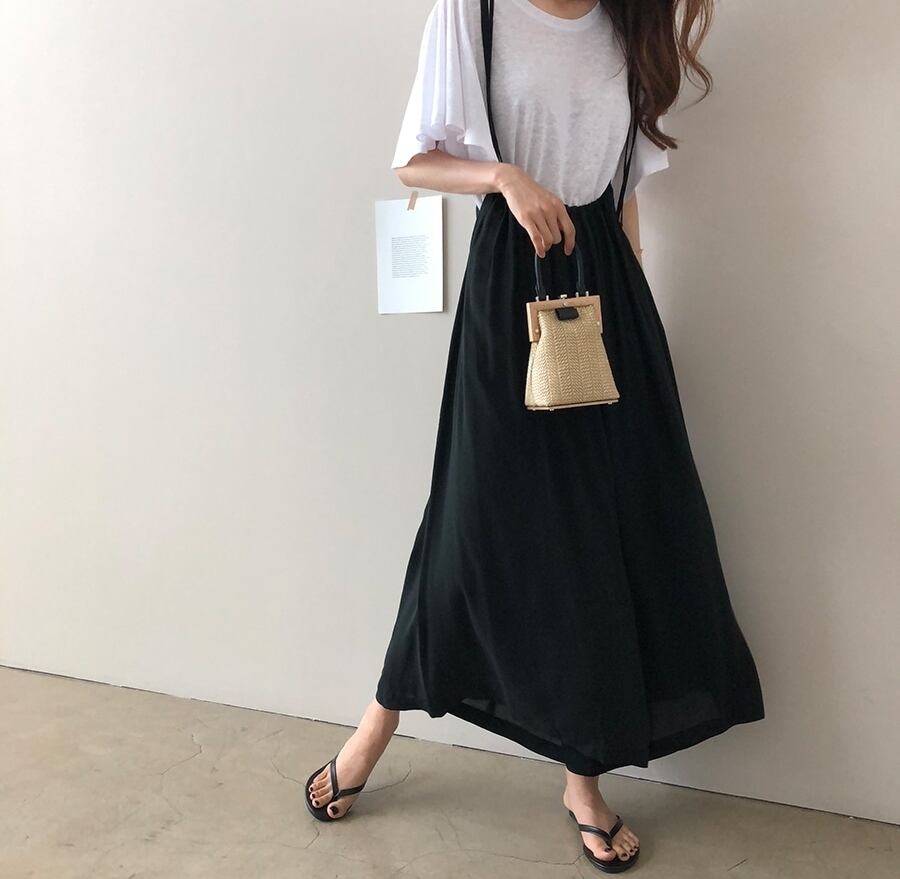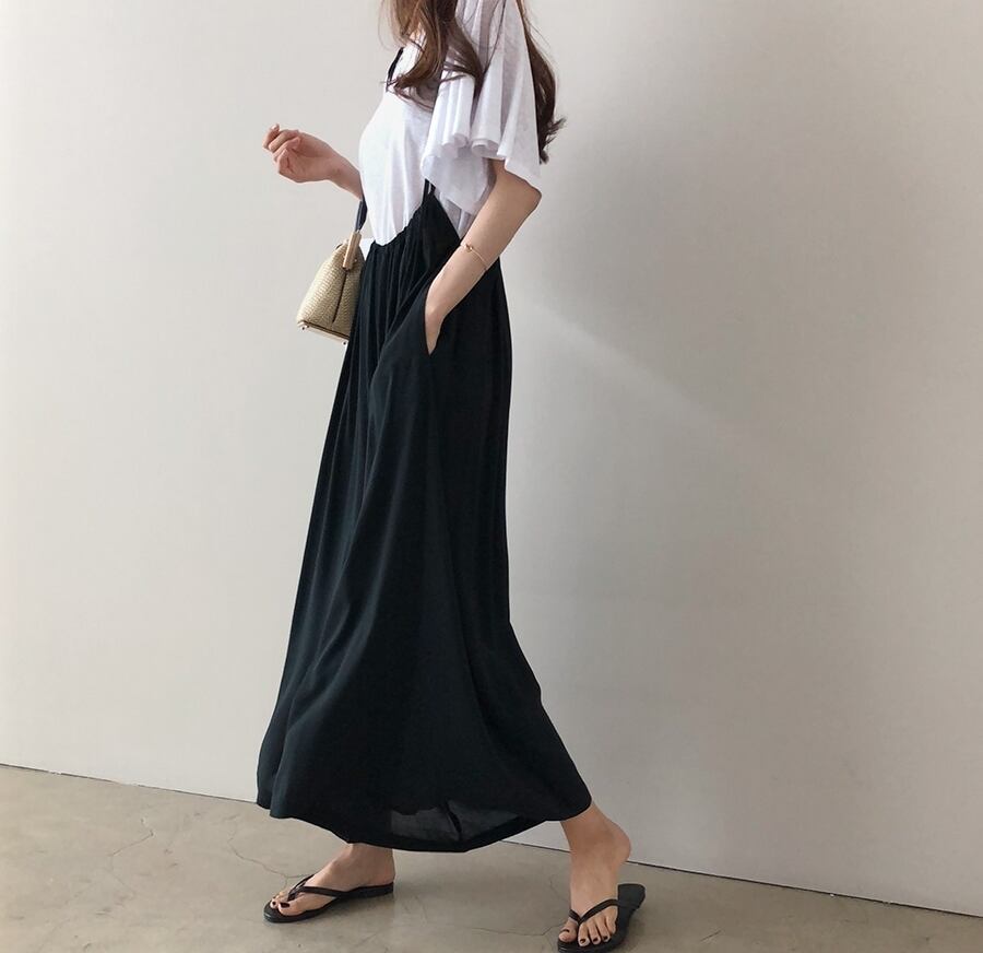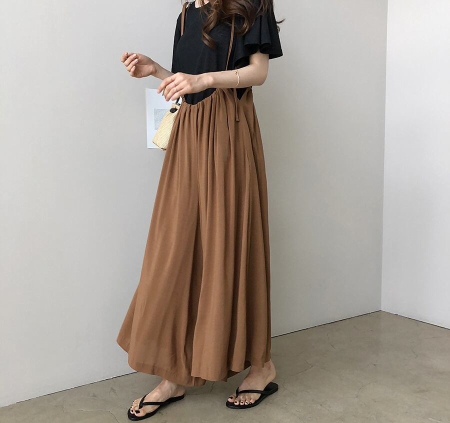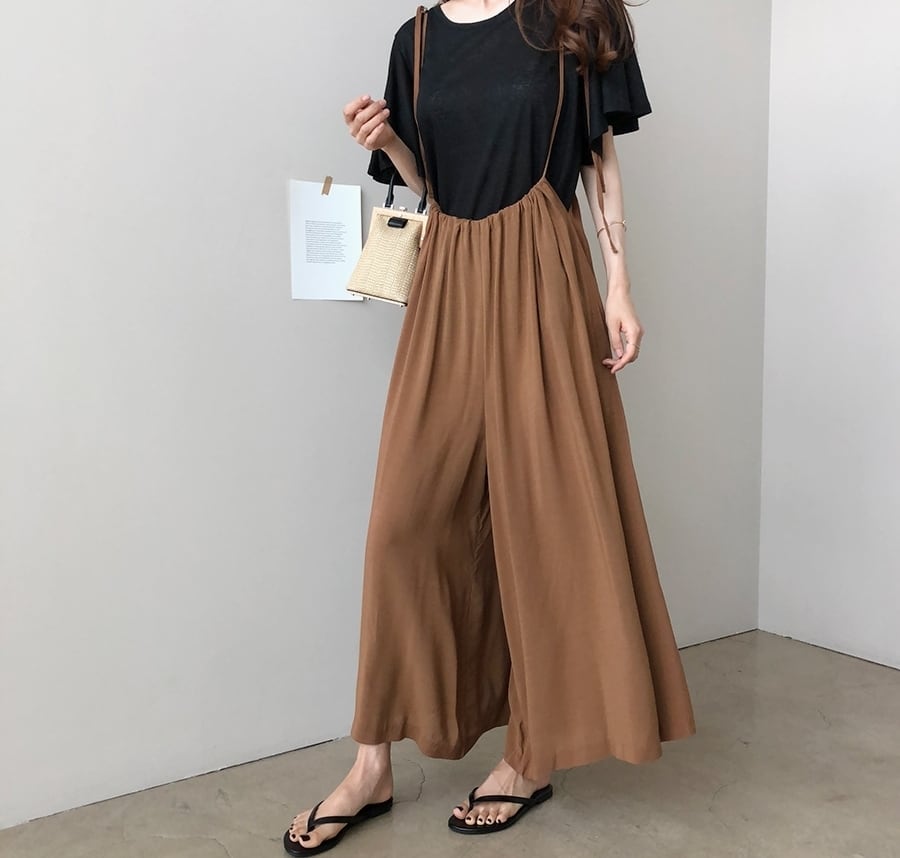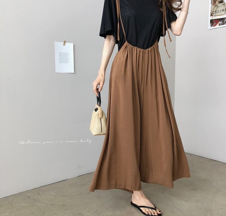 全2色 サロペット サスペンダーパンツ ワイドパンツ ゆったり オーバーサイズ フレアパンツ ハイウエスト ラフ 大人 カジュアル リラックス 楽ちん 韓国ファッション リゾート 夏