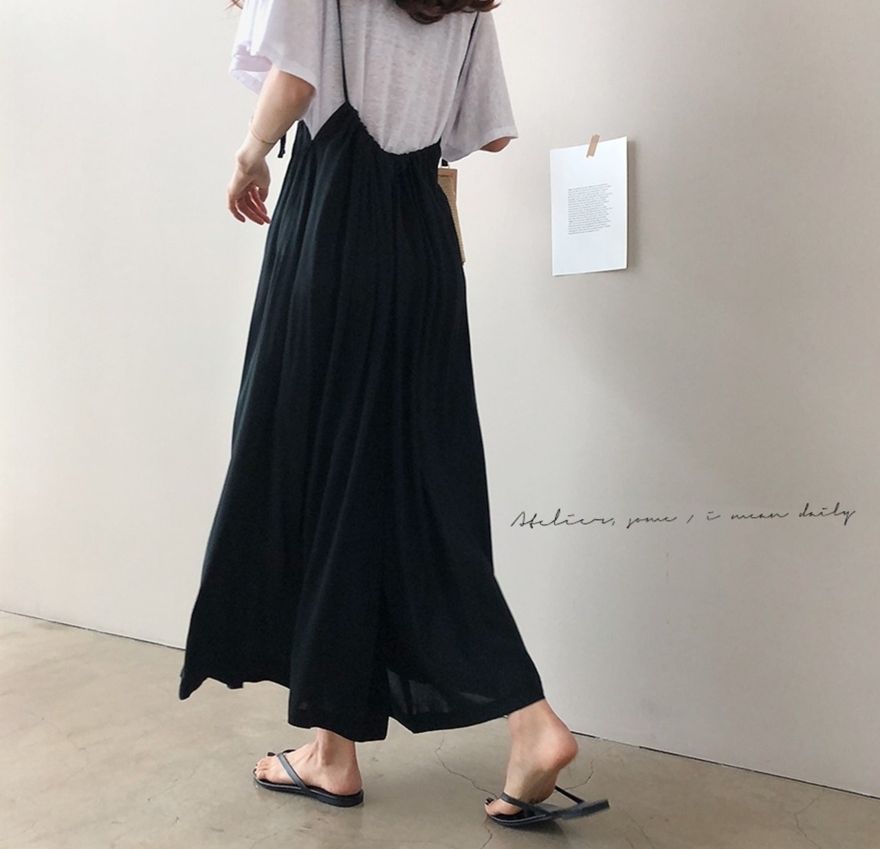オーバーでゆったりシルエットが程よい抜け感を演出するサスペンダーパンツ。