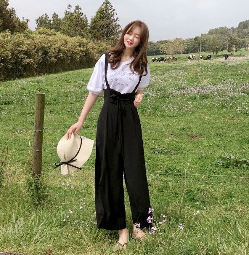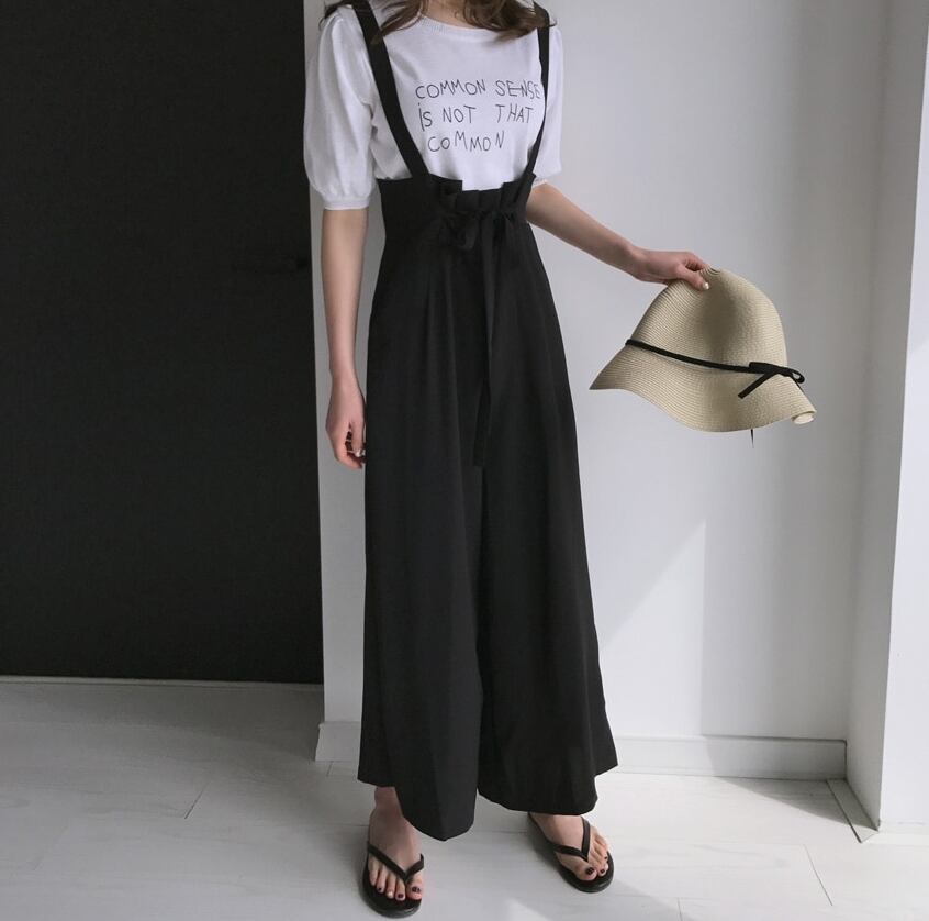 サロペット サスペンダーパンツ ワイドパンツ ゆったり ウエストリボン ハイウエスト 上品 大人 カジュアル デイリー お出かけ デート 大人可愛い 韓国ファッション リゾート 夏