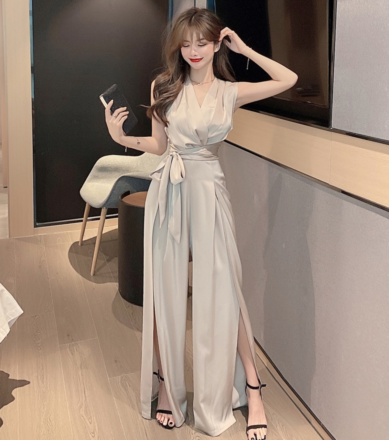 大胆に開いたスリットが大人の色気を感じさせます。