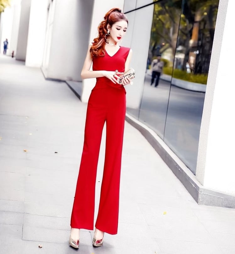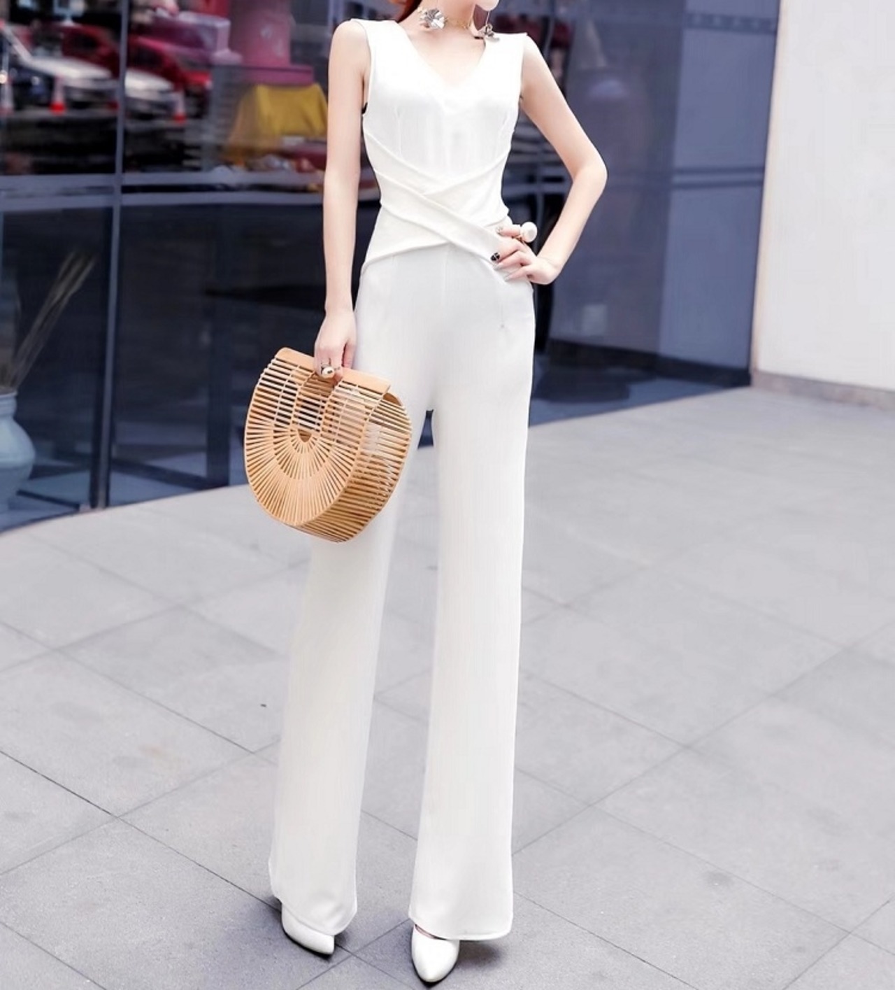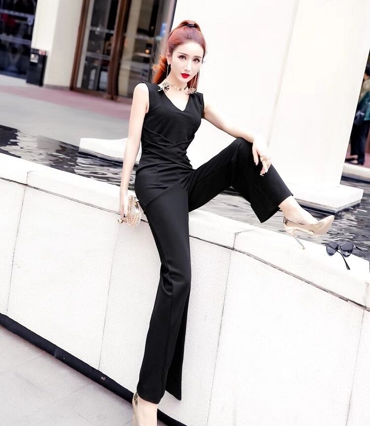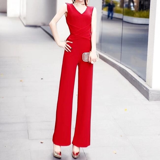 全4色 ジャンプスーツ オールインワン Vネック ノースリーブ ワイドレッグ シック 上品 エレガント 大人 カジュアル きれいめ 女子会 デート 夏 秋