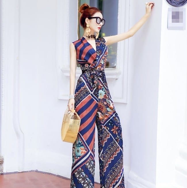 ユニーク柄が華やかな印象のオールインワン。