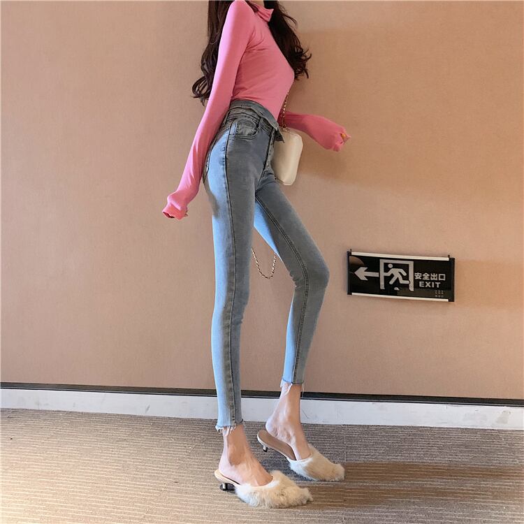 全2色 デニムパンツ ジーンズ Gパン スリムパンツ スキニー レギンス 9分丈 ハイウエスト フロントボタン カジュアル シンプル レトロ セクシー 美脚 お出かけ デート 女子会 リゾート デイリー 普段着 夏 ブルー ブラック