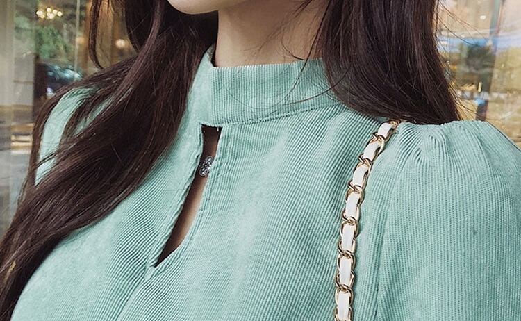 コーデュロイ素材で秋冬にぴったりのワンピース。