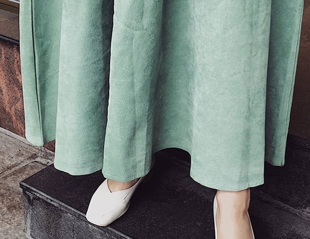 綺麗な落ち感と広がり過ぎないフレアなスカートが程よく上品な仕上がり、歩くたびに動きのある表情を演出します♪