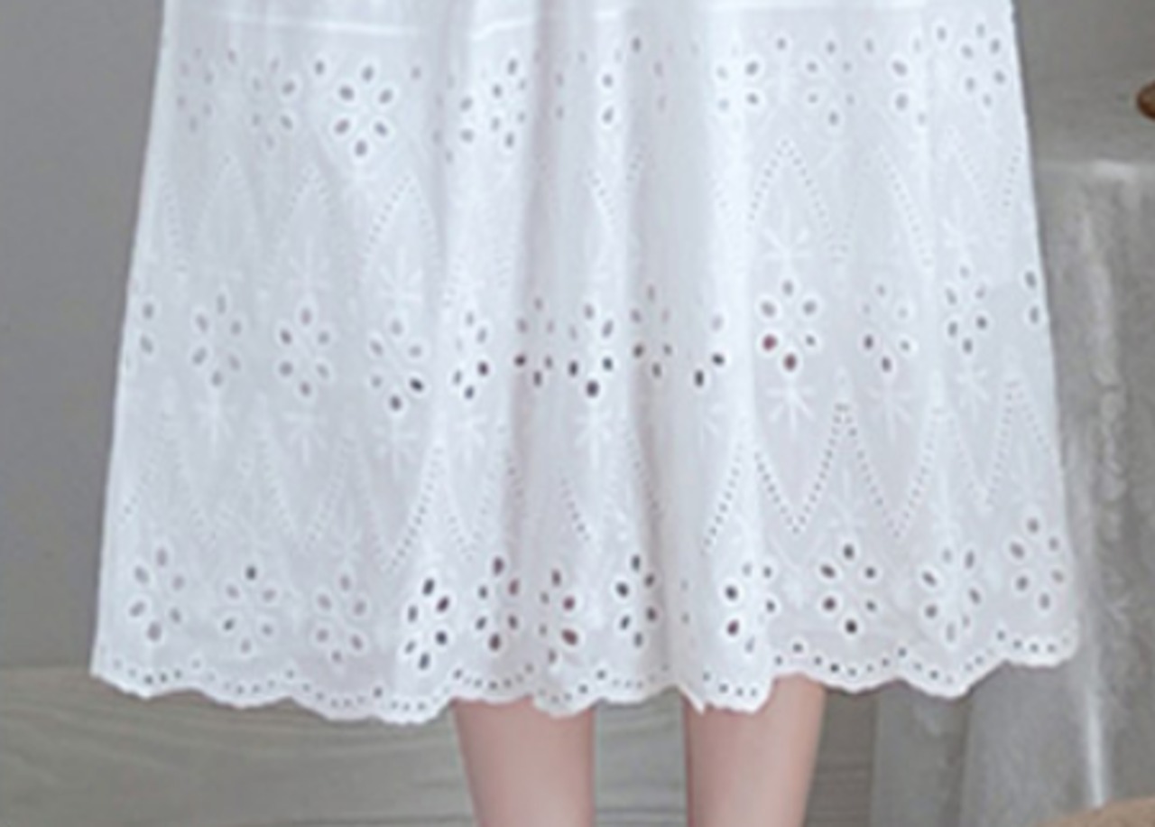 レースのディテールが大人可愛い印象のミモレ丈ワンピース。