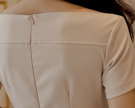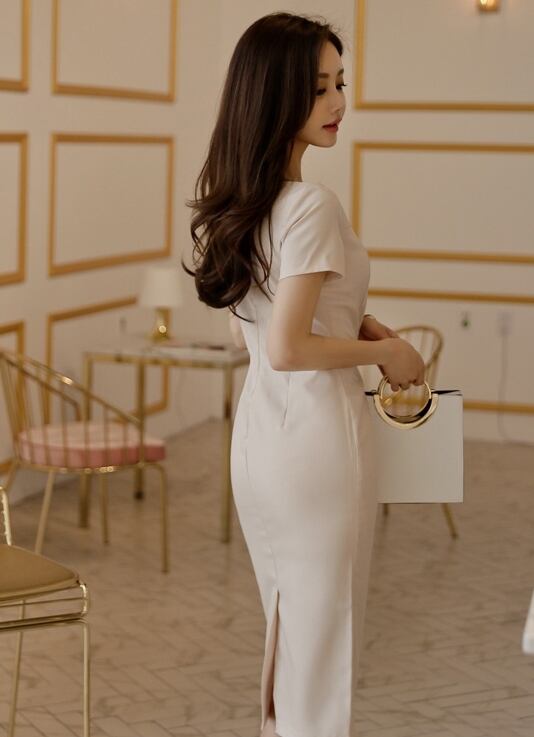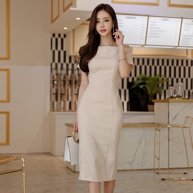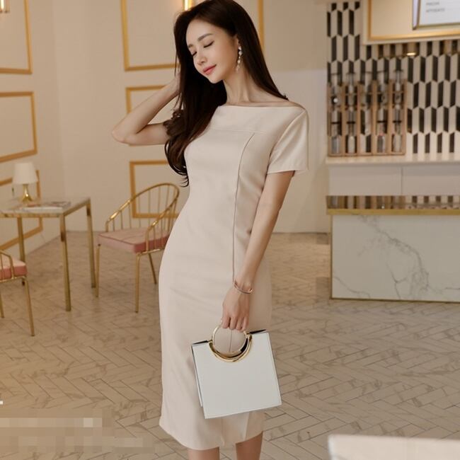 ワンピース ドレス ミモレ丈 半袖 オフショルダー タイト スリム 大人 無地 上品 エレガント バックスリット フォーマル お呼ばれ 女子会 結婚式 韓国ファッション 夏 秋