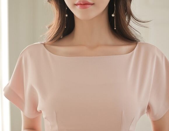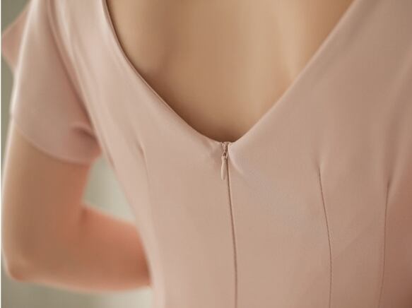 ワンピース ドレス ひざ丈 背中開き 背中見せ バックV 半袖 ボートネック タイト スリム 大人 無地 上品 エレガント バックスリット フォーマル お呼ばれ 女子会 パーティー 結婚式 韓国ファッション 夏 秋