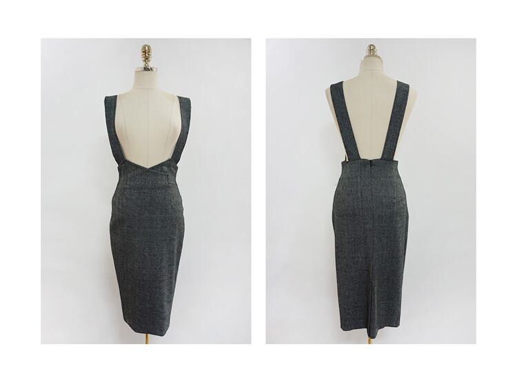 タイトデザインのサロペットスカートが女性らしいシルエットを活かしてくれます♪