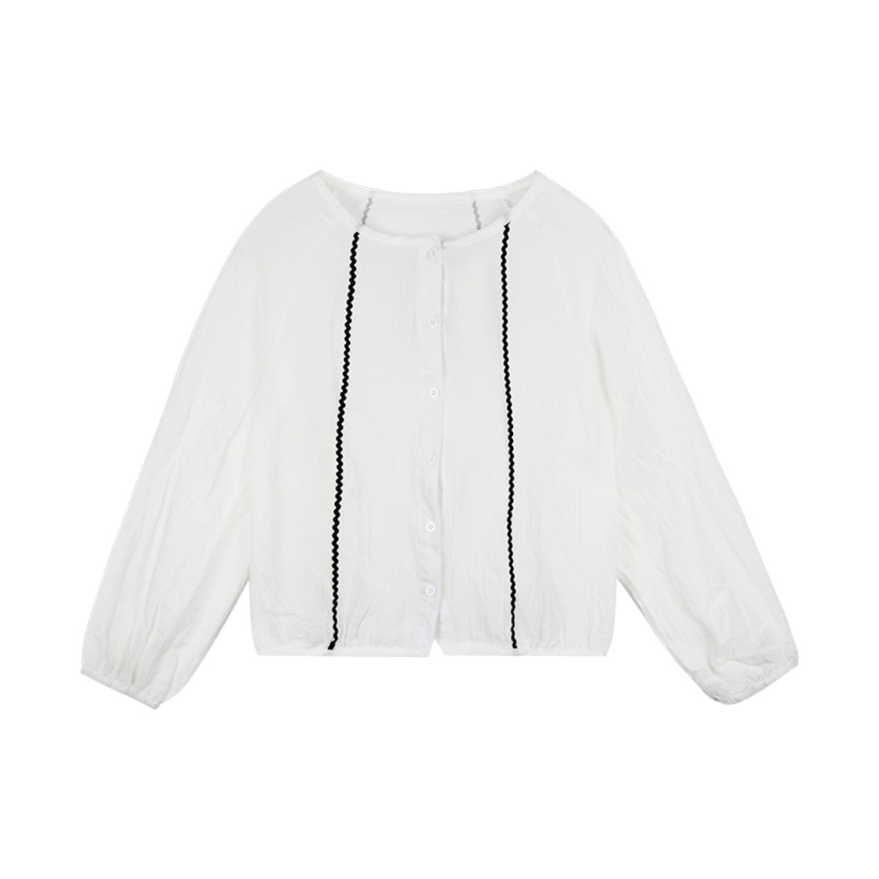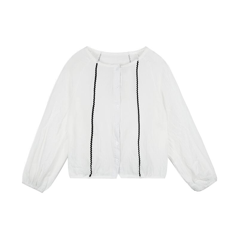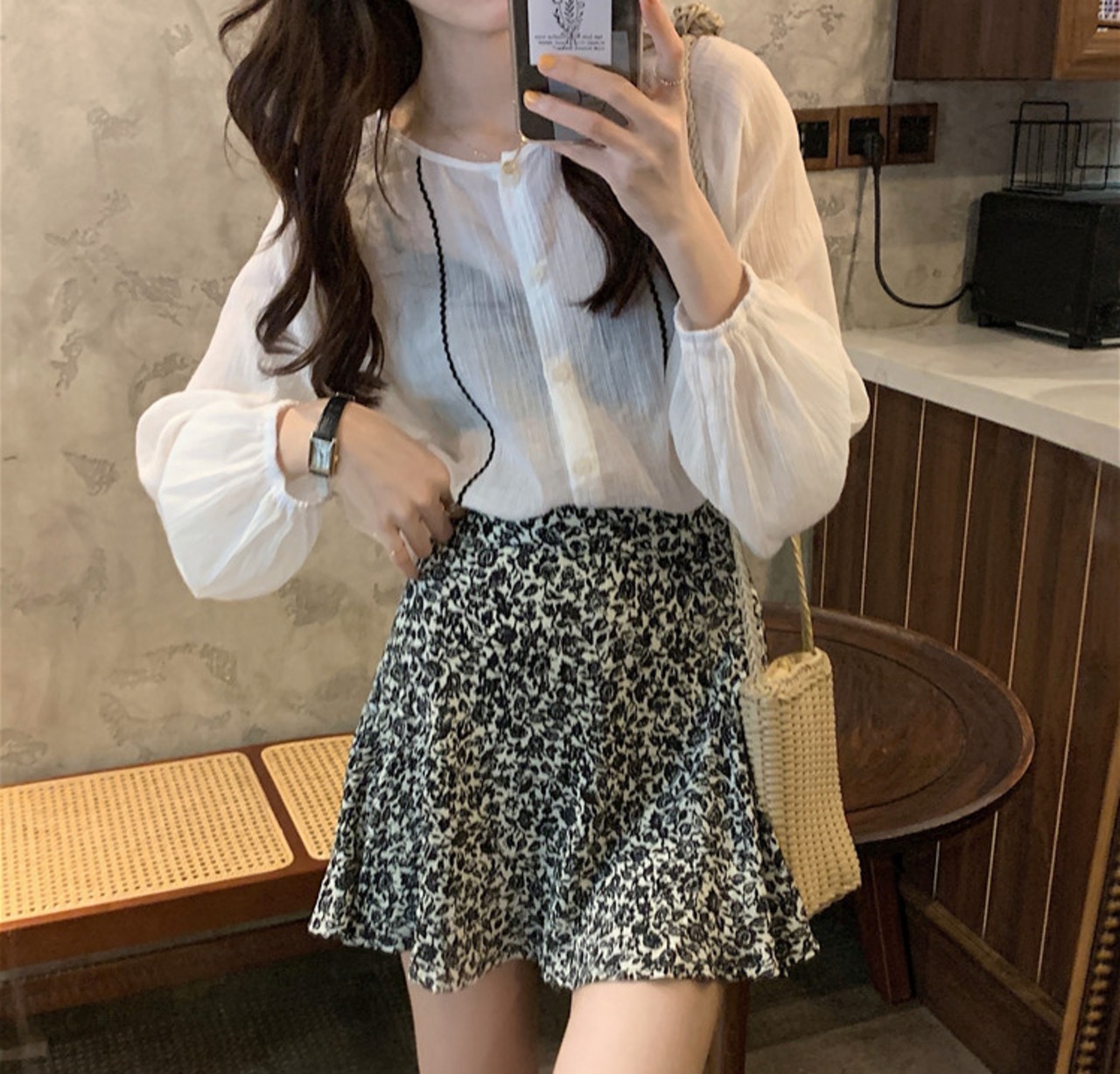 全2種 ブラウス シャツ シースルー 長袖 ランタンスリーブ スカート ノーカラー フロントボタン ミニ丈 フレア Aライン 花柄 可愛い ハイウエスト お出かけ カジュアル デート デイリー 韓国ファッション 夏 秋
