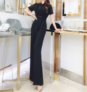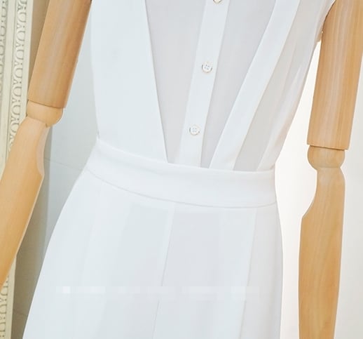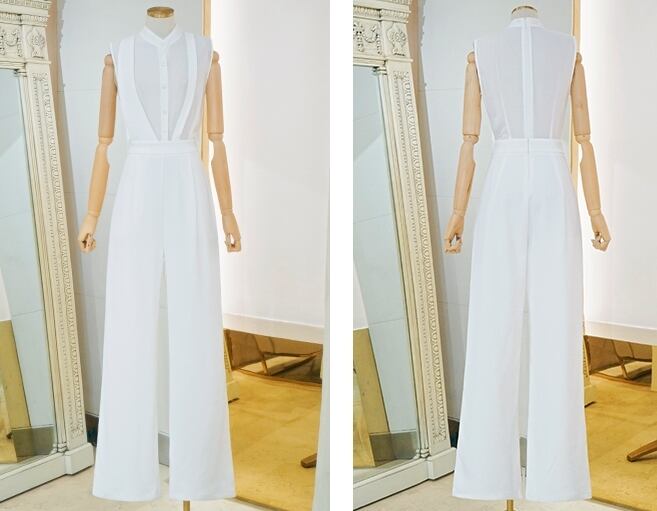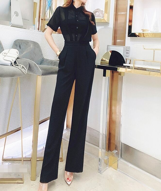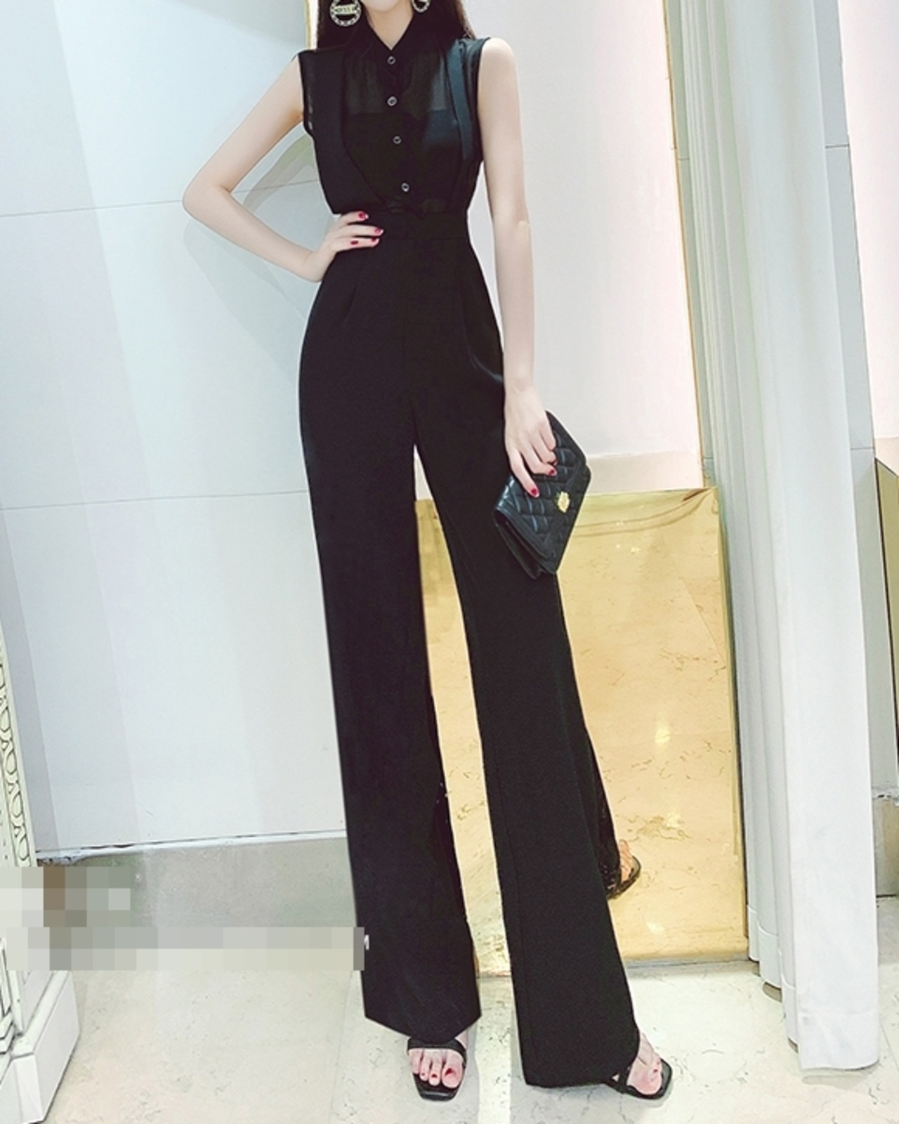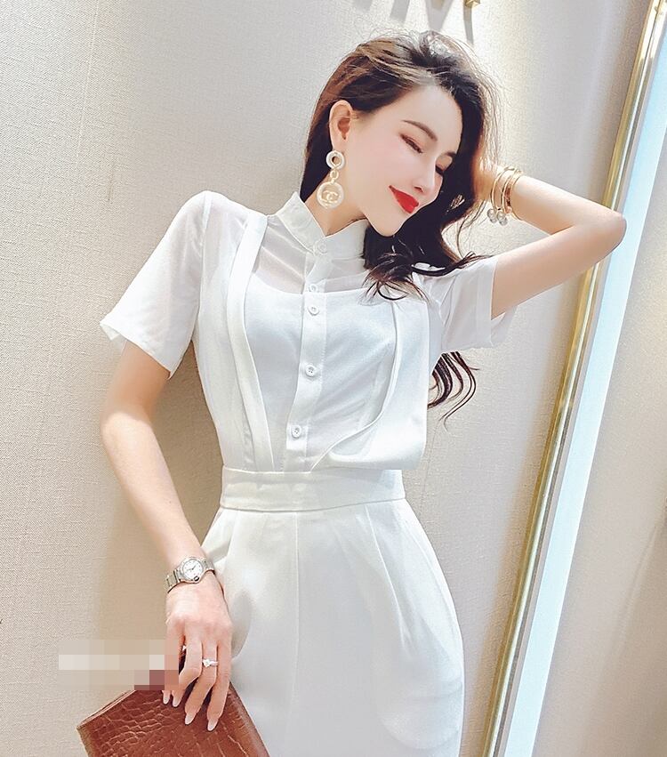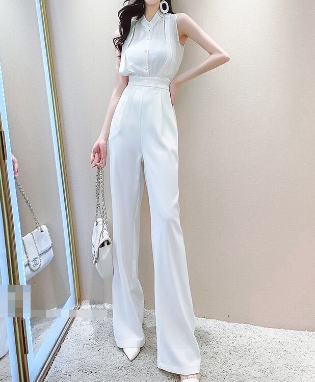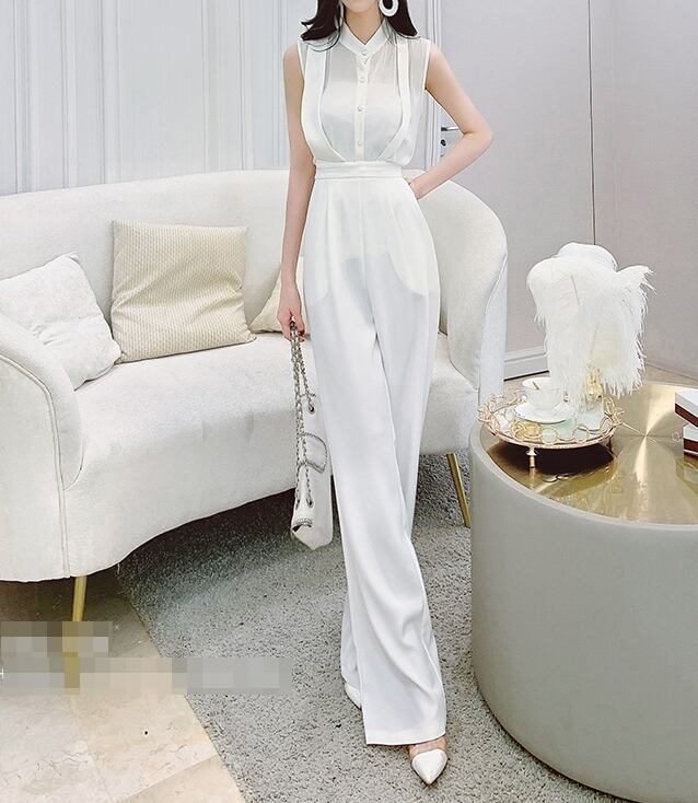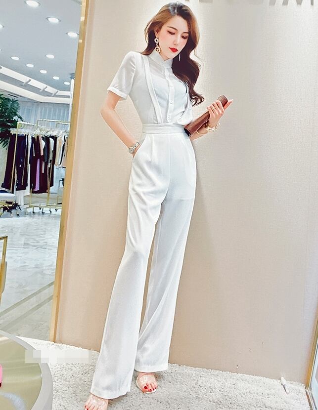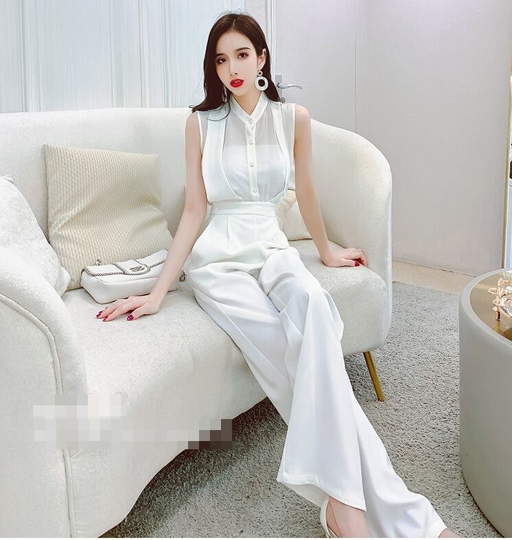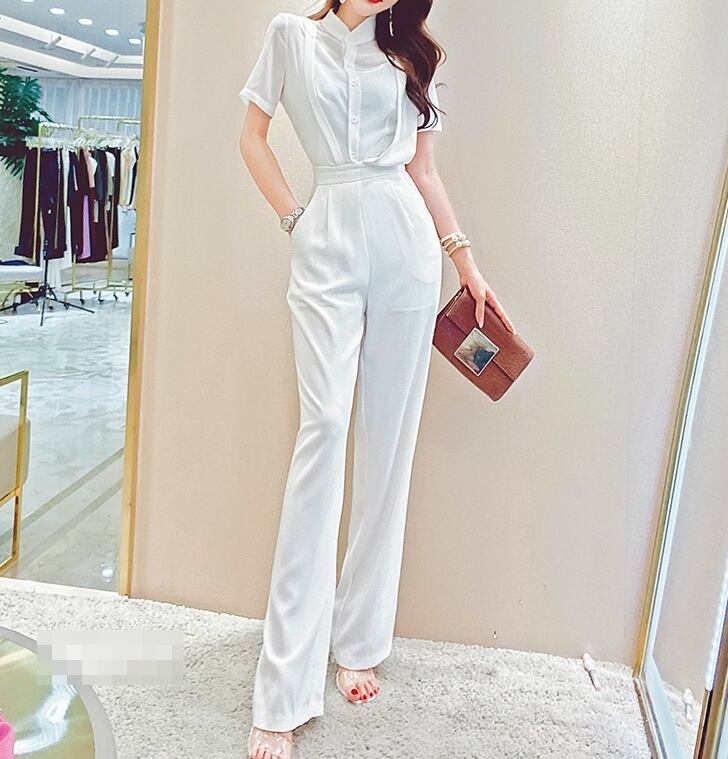 全2色 2種 フェイクツーピース ジャンプスーツ オールインワン スタンドカラー 半袖 フロントボタン 大人 ノースリーブ ハイウエスト ワイドレッグ 大人 上品 カジュアル きれいめ シック デート お出かけ 女子会 夏 秋